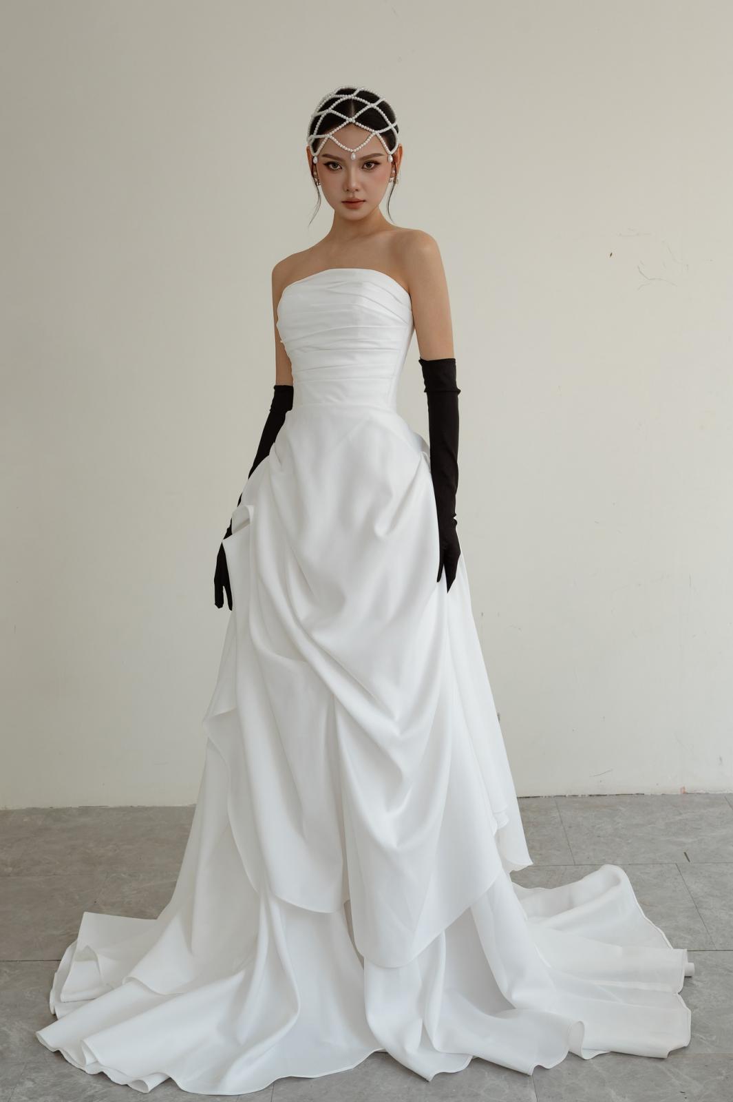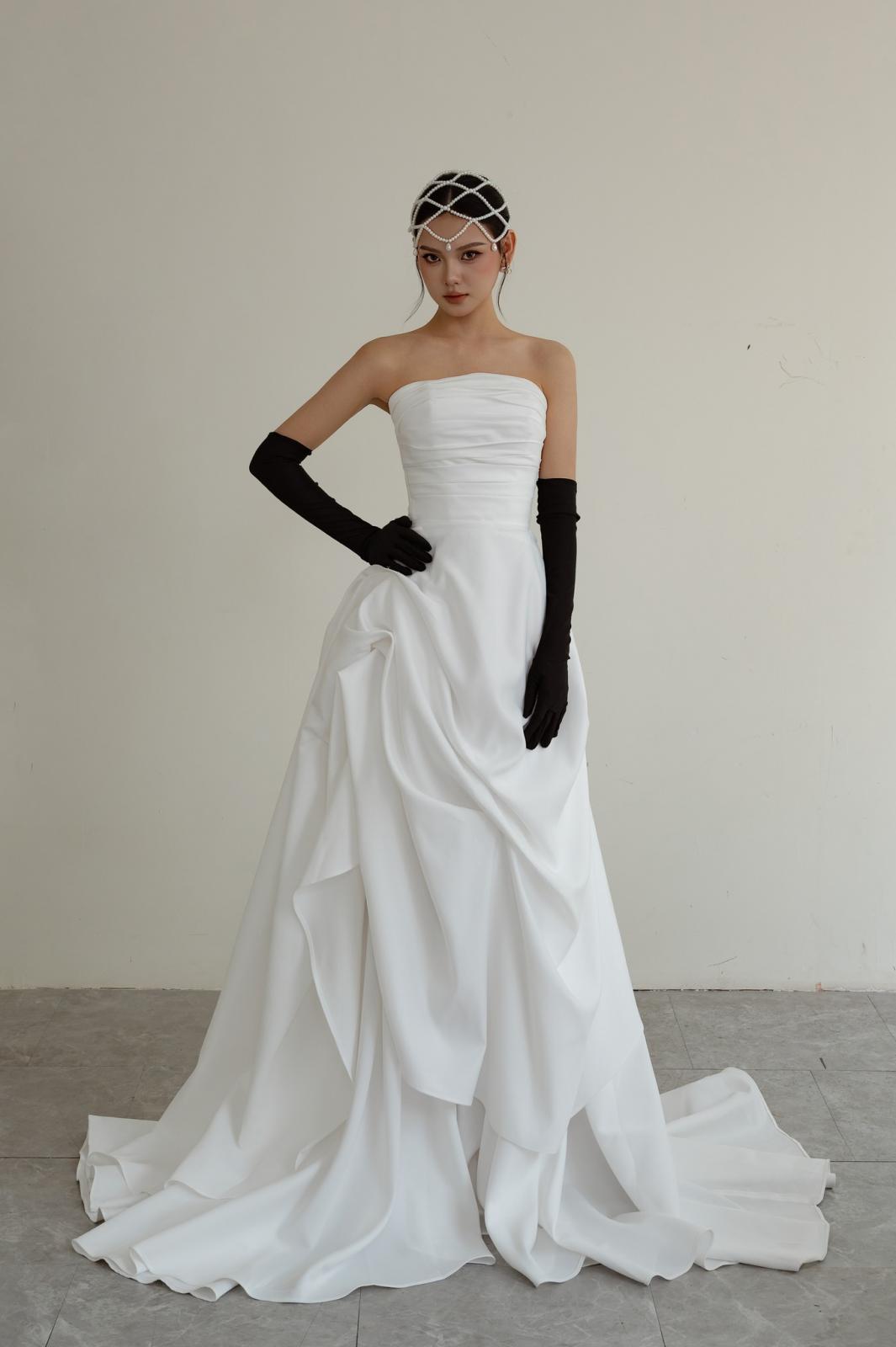 Chiếc váy này dành cho nàng yêu sự nổi bật, muốn bước vào lễ đường với thần thái tự tin và khí chất sang trọng.
