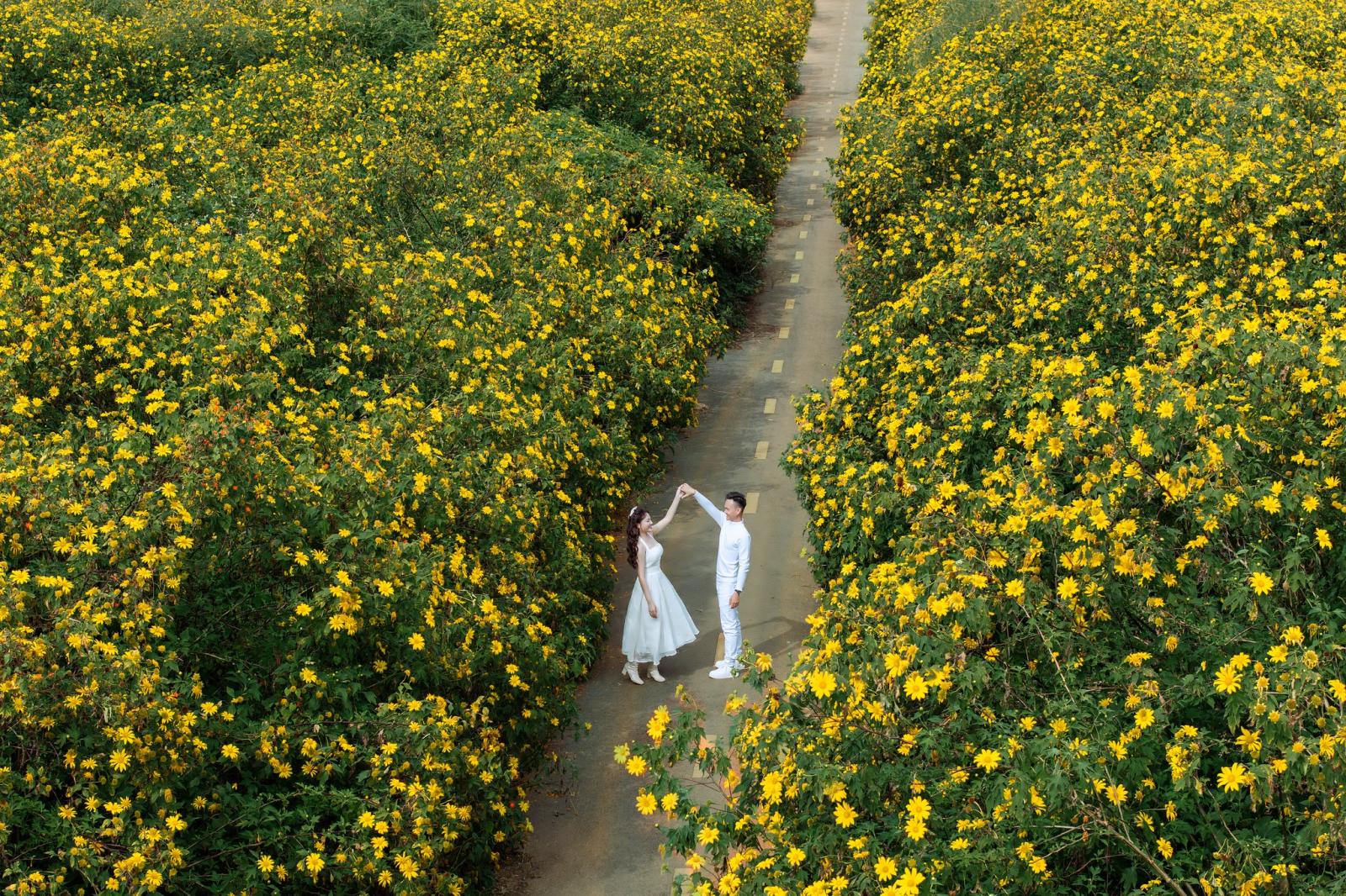 - Concept: Chụp ảnh cưới ấm áp, lãng mạn với sắc vàng của dã quỳ. Chụp hình đám cưới với phong cách rustic, bohemian.
