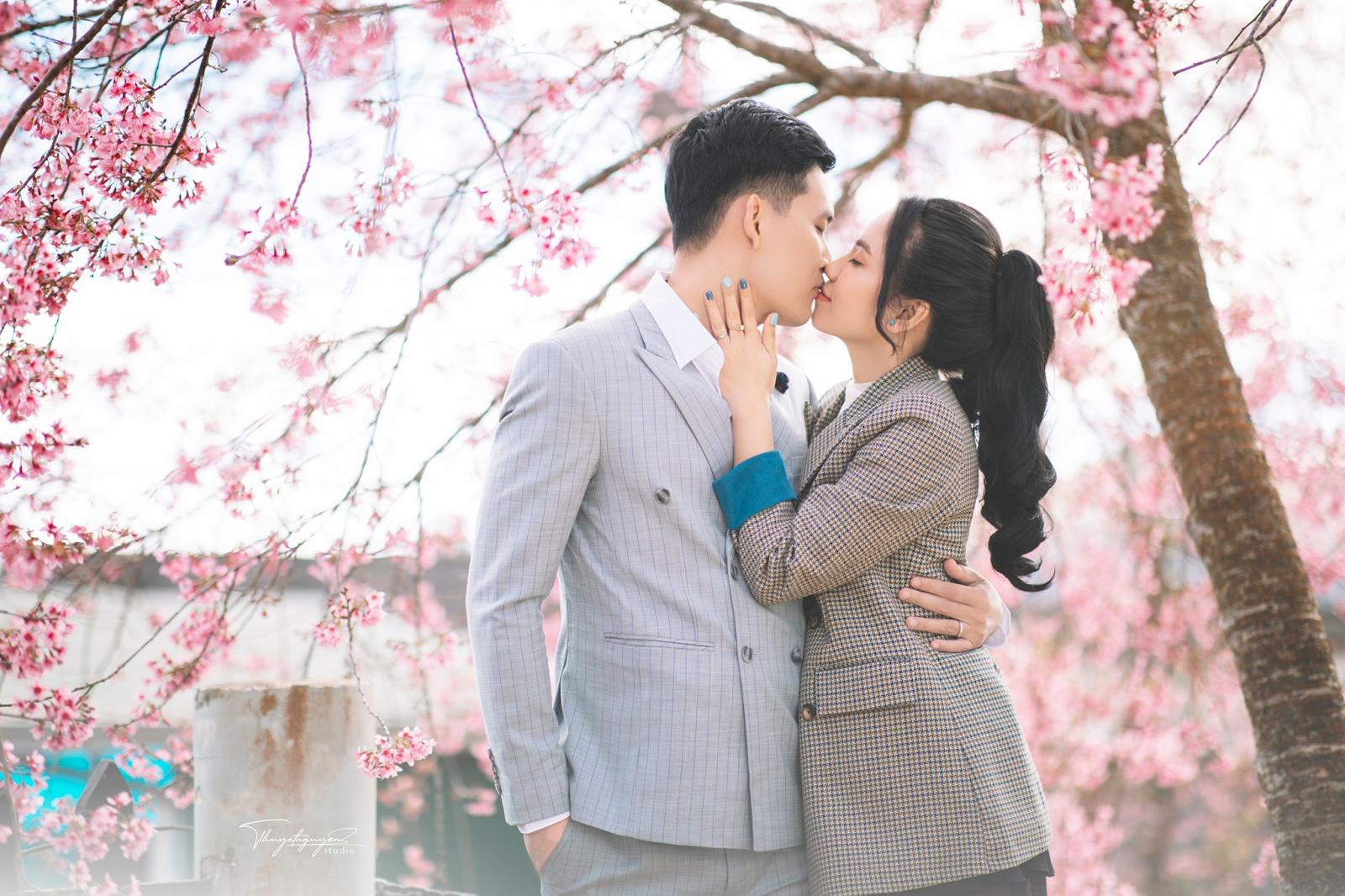 - Concept: Lãng mạn, tinh khôi, tươi tắn. Các cặp đôi có thể chọn chụp hình cưới Hàn Quốc nhẹ nhàng, hoặc chụp ảnh cưới cô dâu một mình giữa rừng hoa mai anh đào.