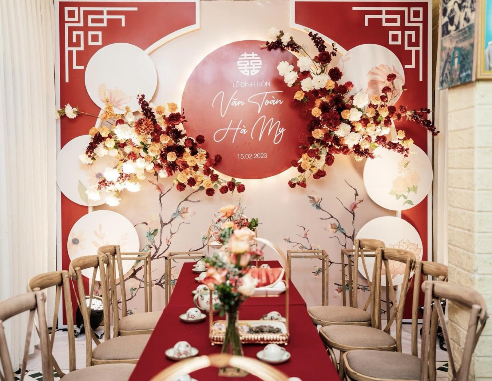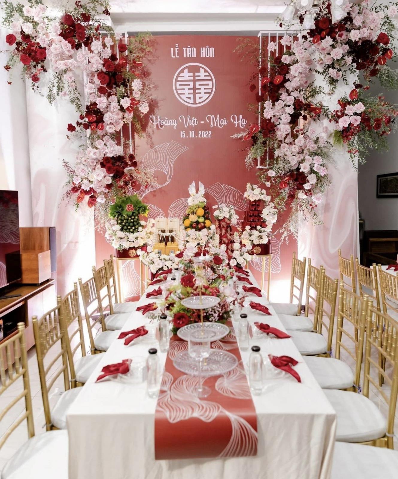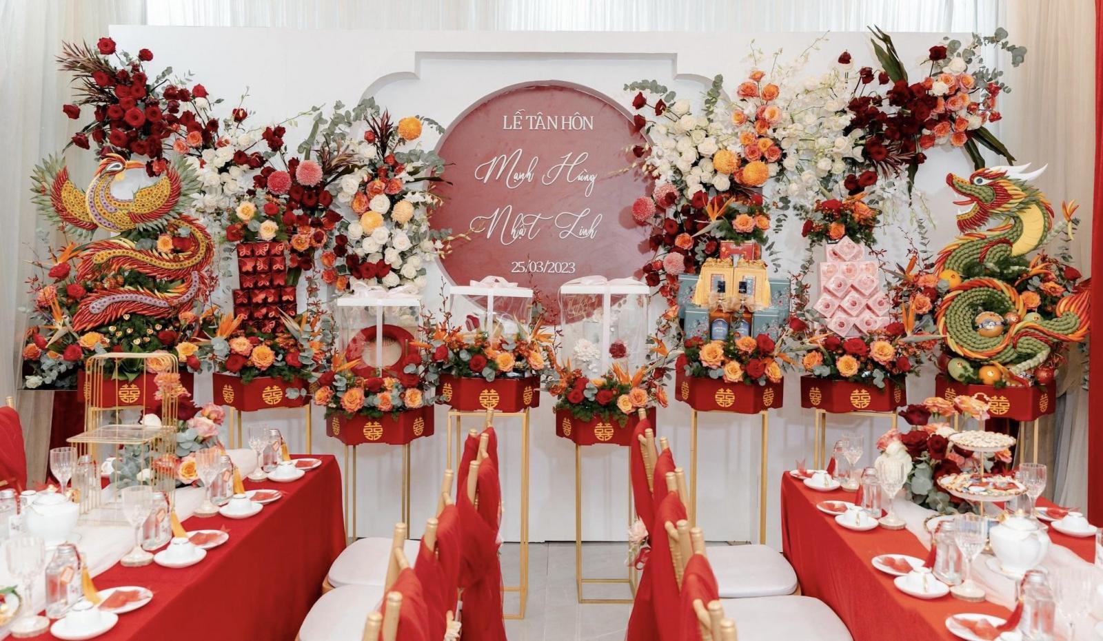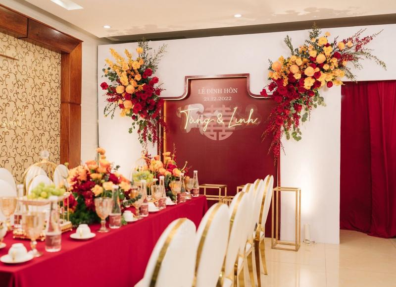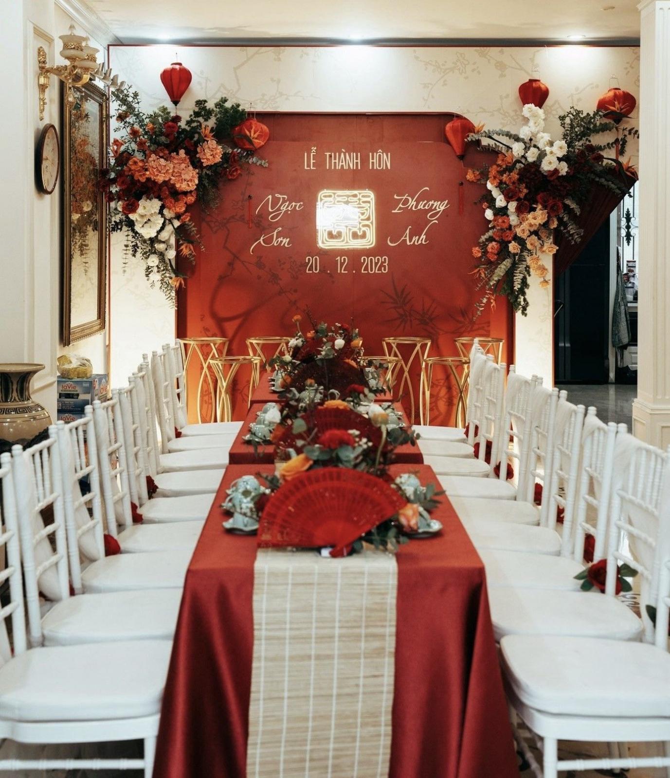 Một trong những tone màu được đại đa số cặp đôi yêu thích & lựa chọn cho gia tiên của mình chính là tone đỏ - tone màu truyền thống. Với background được trang trí đầy hoa, kết hợp cùng các tone màu đỏ, trắng, mix chút cam,... sẽ là lựa chọn vô cùng tuyệt vời để những bức ảnh làm lễ gia tiên thêm rực rỡ.