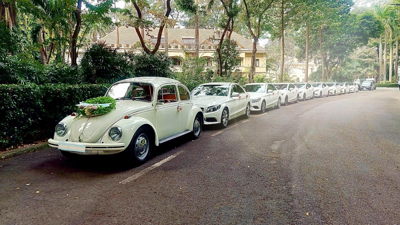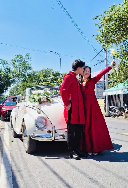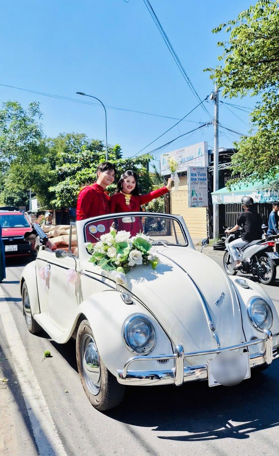 📸 1. Vì đám cưới là phải "Độc & Lạ" Giữa hàng trăm đám rước dâu bằng xe đời mới giống nhau, chiếc Volkswagen Beetle với những đường cong bo tròn cổ điển xuất hiện như một làn gió mới. Nó biến cả con đường rước dâu thành sàn diễn thời trang thập niên 80-90.