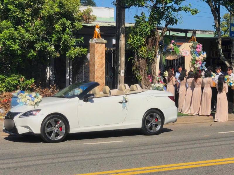 🚗 1. Thần thái "mui trần" - Đẹp bất chấp góc nhìn Lexus mui trần luôn là biểu tượng của sự phóng khoáng và thượng lưu. Khi mở mui, cô dâu chú rể có thể dễ dàng vẫy tay chào quan viên hai họ, tạo nên những thước phim flycam hay quay chụp "để đời" mà xe thường không làm được.