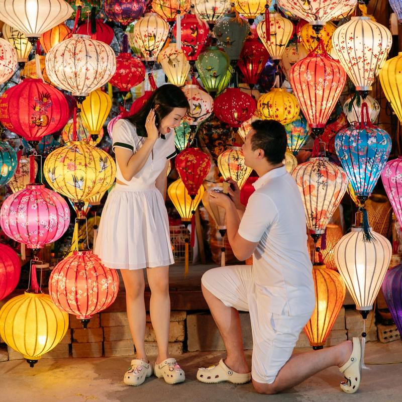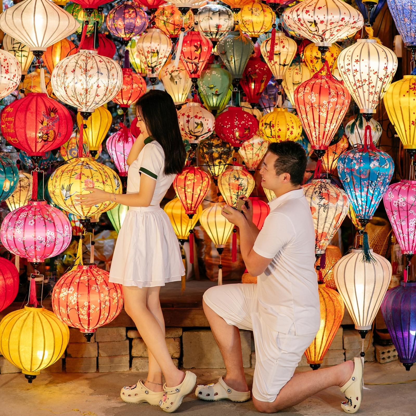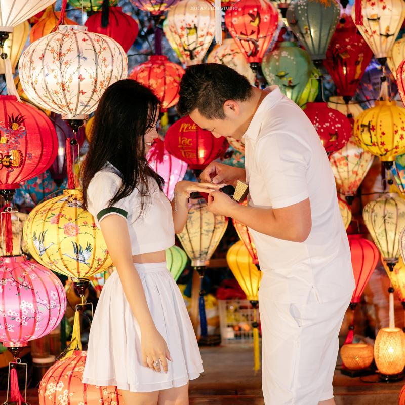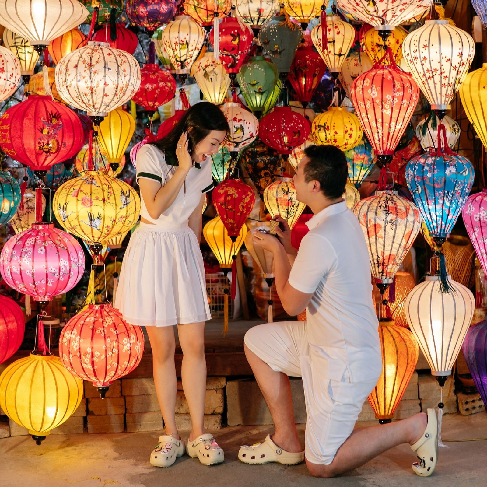 Màn cầu hôn đầy lãng mạng và tình cảm tại Hội An của cặp đôi Mike và Ruby, dưới sự chứng kiến của ánh lồng đèn. Thật là những khoảnh khoắc của "hạnh phúc"