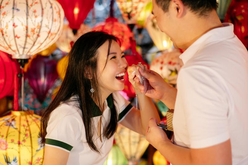 The romantic and emotional proposal of Mike and Ruby in Hoi An, witnessed by the lantern lights. Truly moments of "happiness".