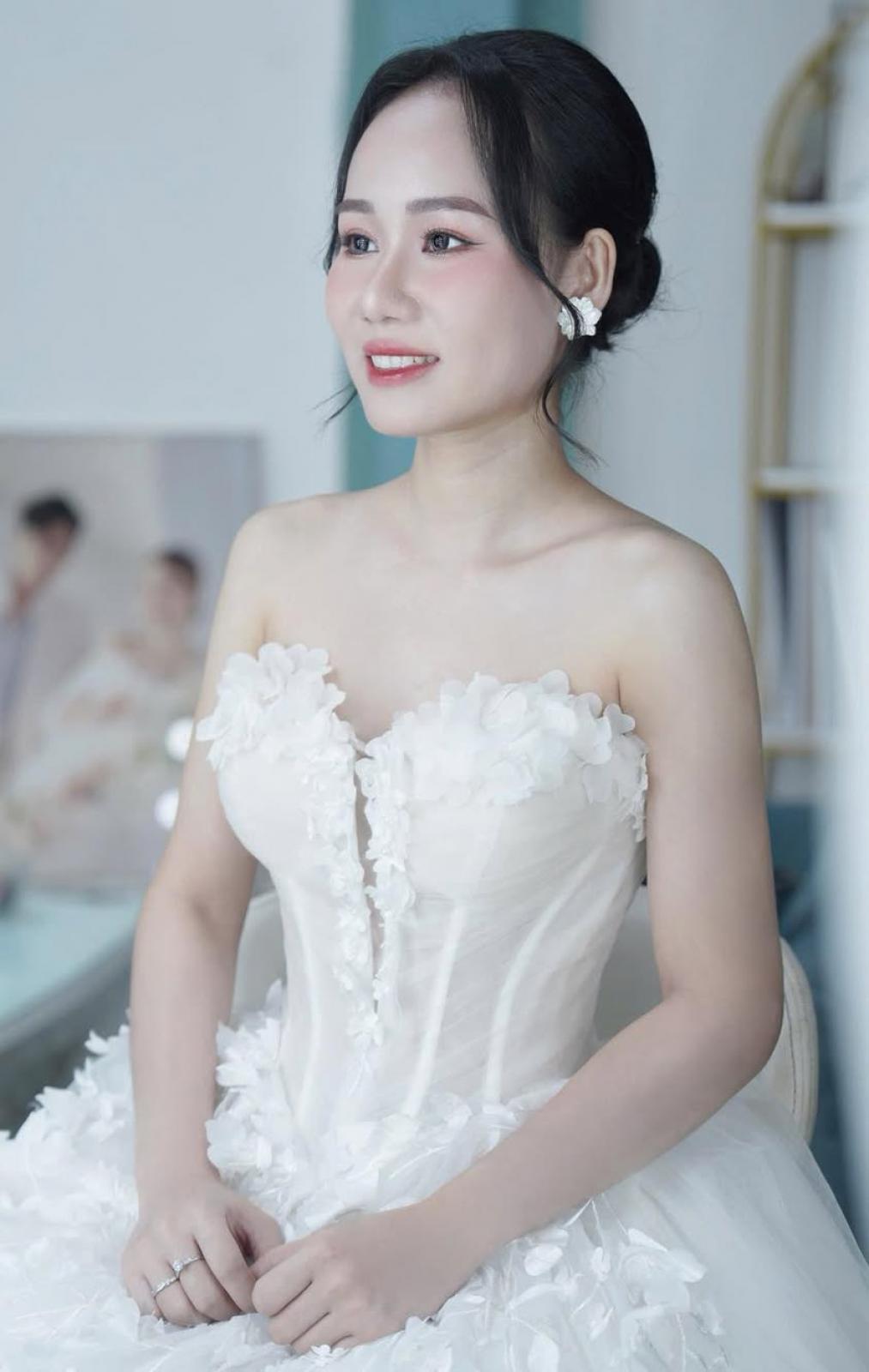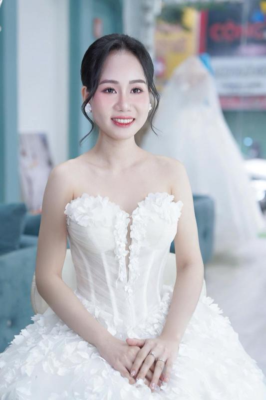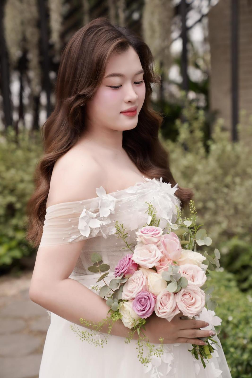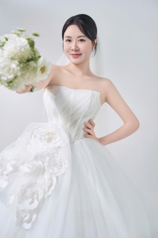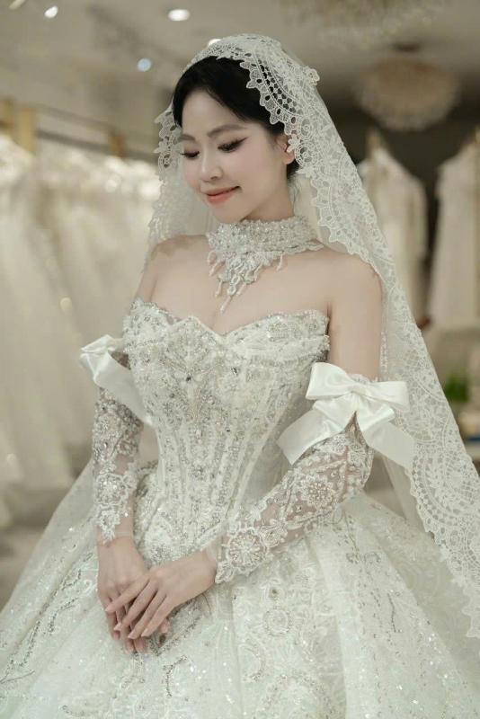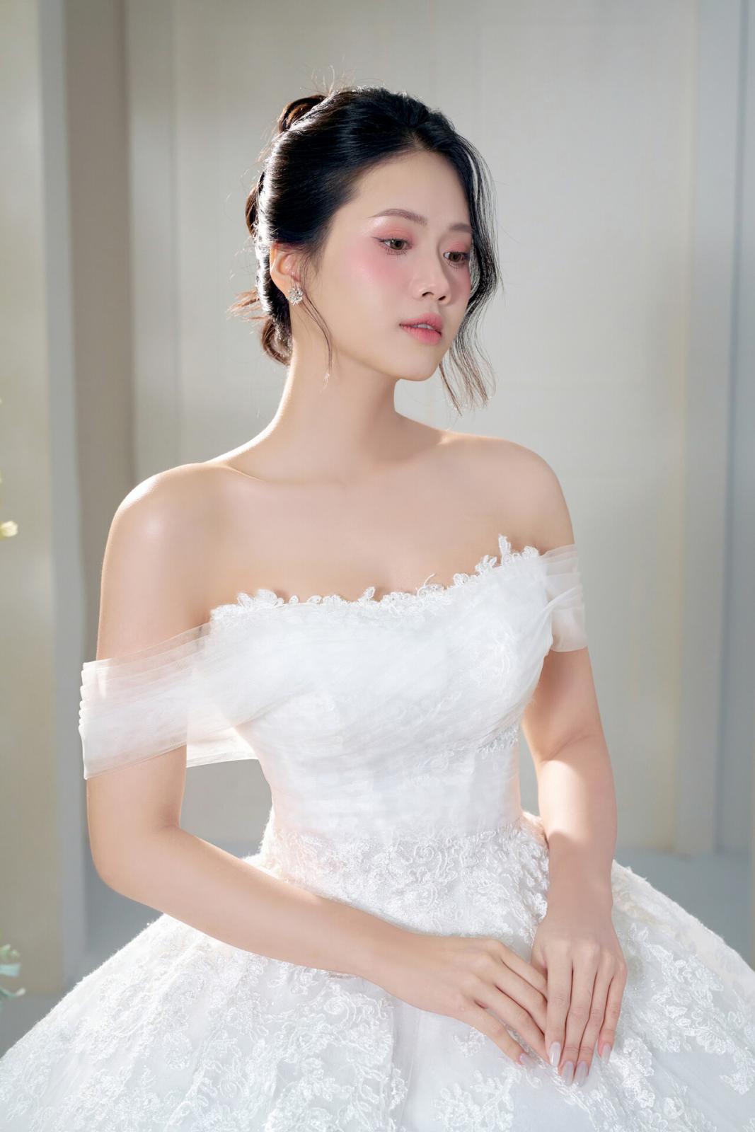 Một chút hồng đào trên đôi má, đôi môi căng mọng và ánh mắt long lanh tự nhiên… tất cả tạo nên một diện mạo vừa ngọt ngào vừa sang trọng cho cô dâu .... xuất hiện trong buổi shooting hôm nay.