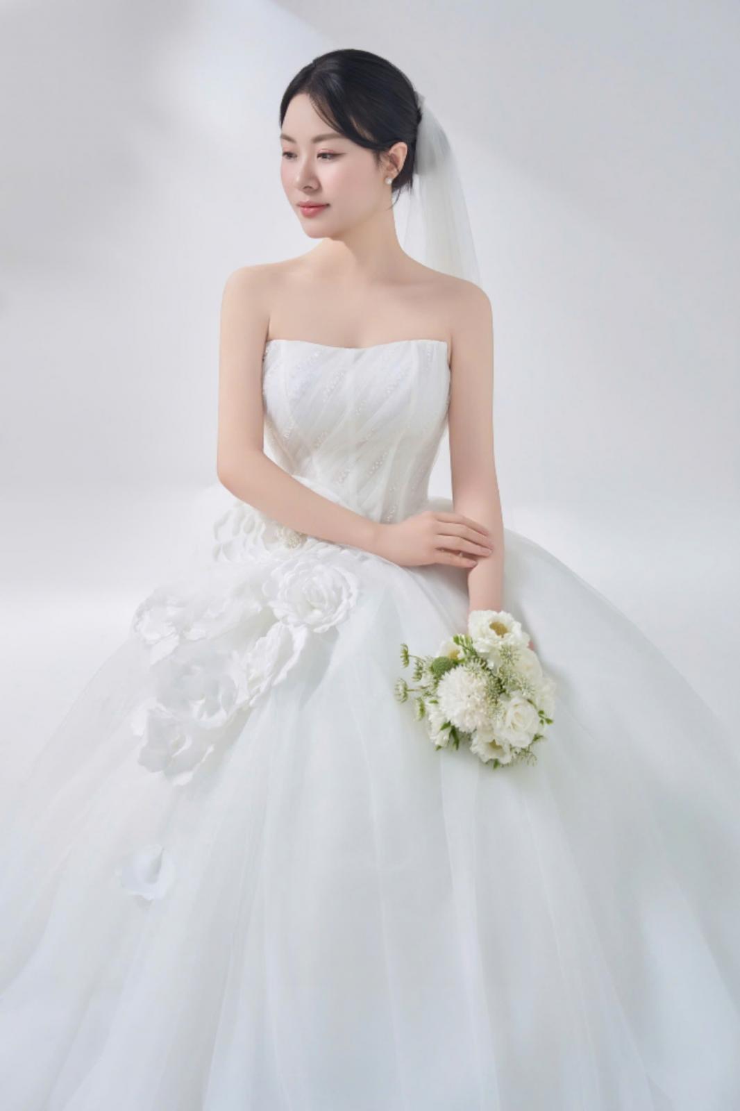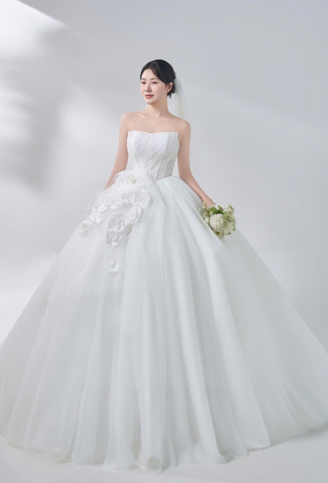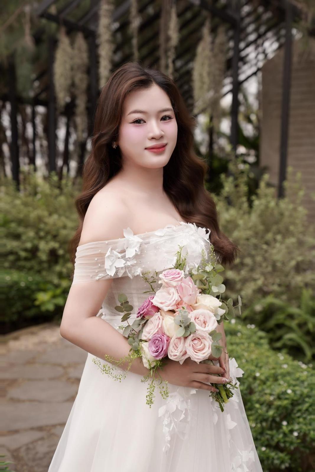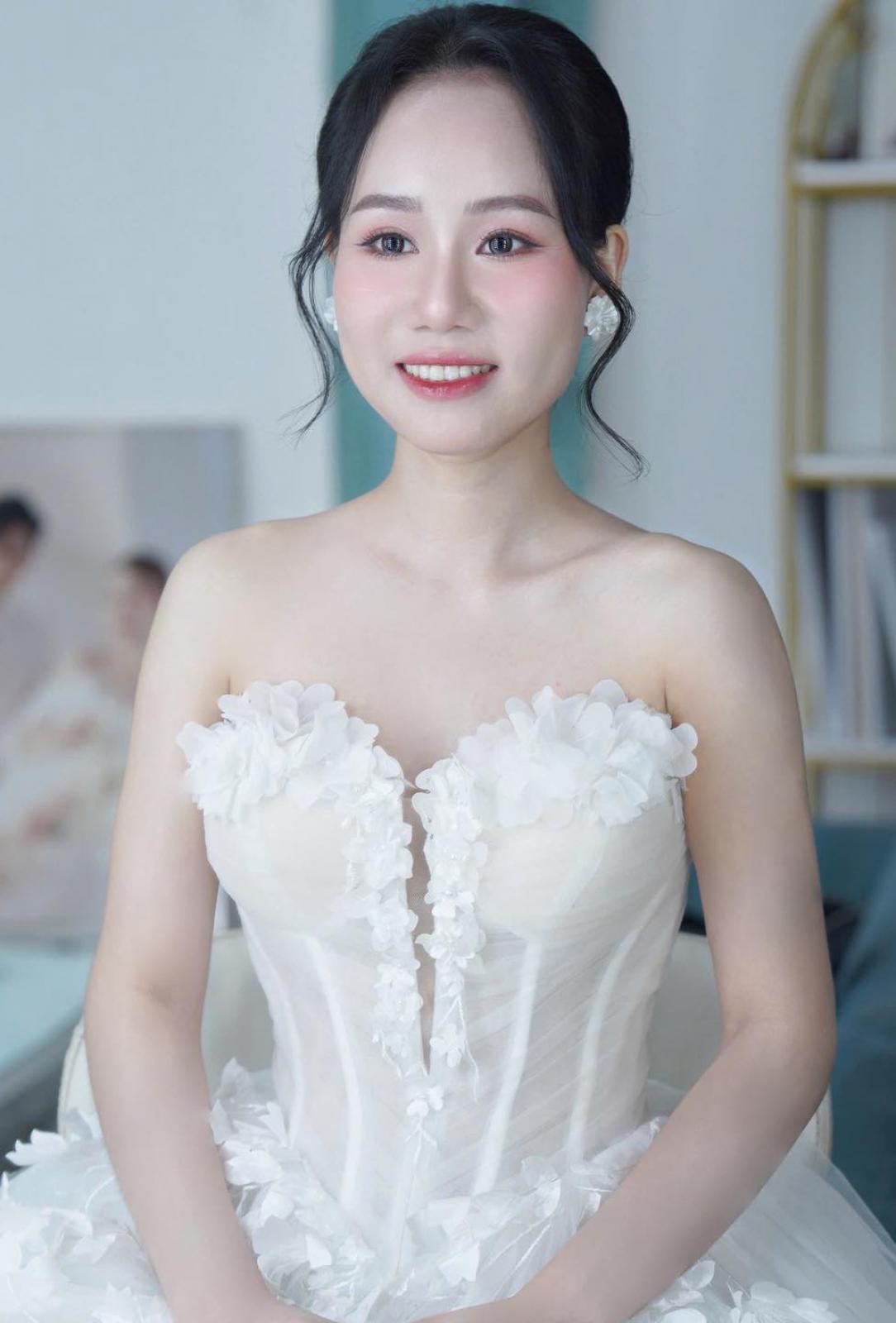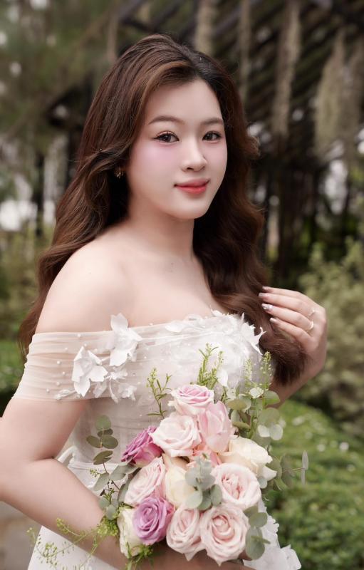 Một chút hồng đào trên đôi má, đôi môi căng mọng và ánh mắt long lanh tự nhiên… tất cả tạo nên một diện mạo vừa ngọt ngào vừa sang trọng cho cô dâu .... xuất hiện trong buổi shooting hôm nay.