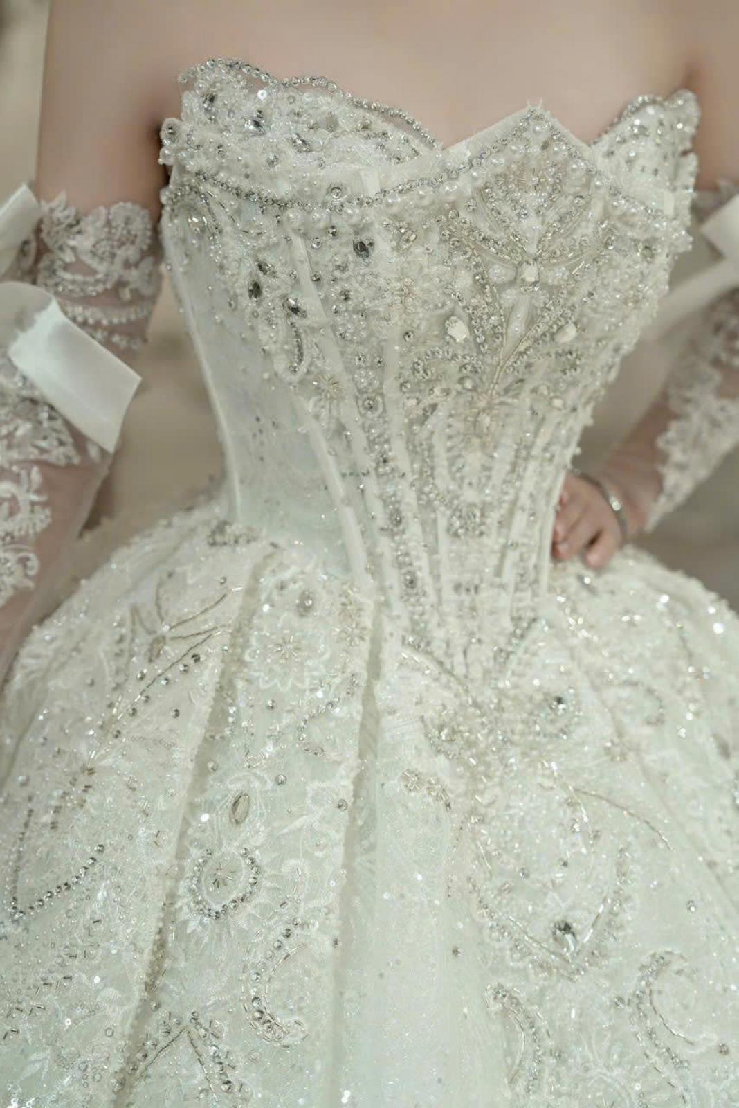 Mẫu váy gây ấn tượng khi sử dụng form dáng corset được đính đá thủ1 ... See more