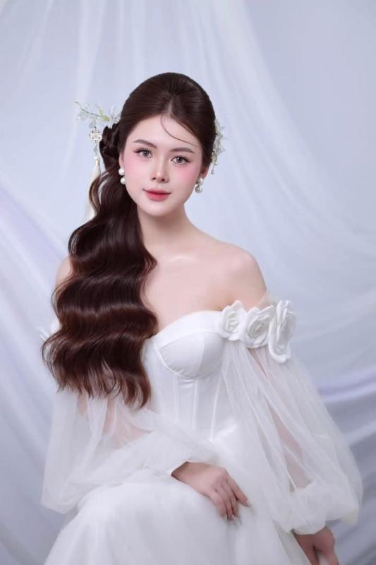 • Tóc: búi thấp Hàn, xoã nhẹ hoặc uốn sóng tự nhiên.