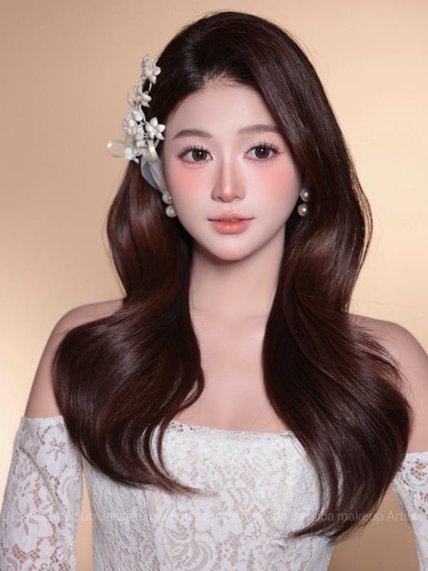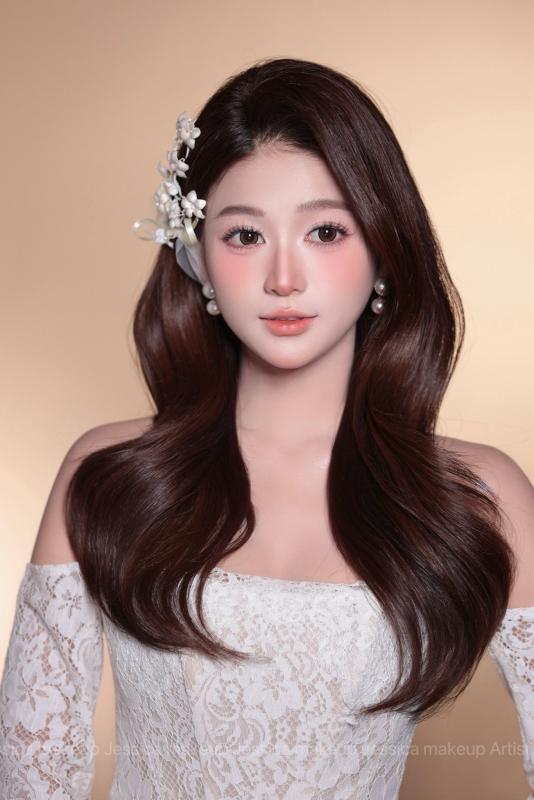 Makeup Hàn Quốc luôn mang đến vẻ đẹp tự nhiên – nhẹ nhàng – thanh thoát, giúp gương mặt trong trẻo mà vẫn cực kỳ nổi bật. Đây là layout rất hợp cho cô dâu buổi sáng, chụp mẫu look thiên thần, ảnh kỷ niệm hay đi tiệc nhẹ nhàng.