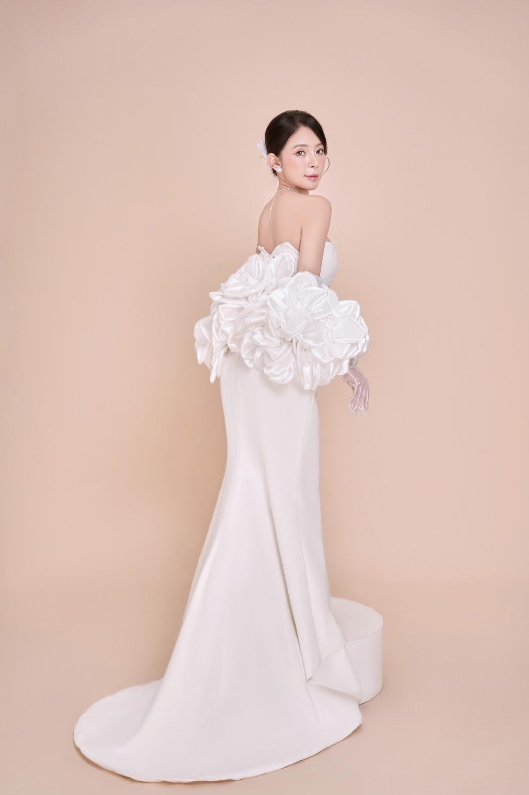 𝗙𝗜𝗢𝗥𝗔 𝗚𝗢𝗪𝗡: Thiết kế váy cưới lần này có phần cúp ngực giúp tôn lên vẻ đẹp của cô Dâu, cùng với phần tà váy hoa trà, tạo nên vẻ đẹp thanh lịch và dịu dàng. Loại váy này thường mang lại cảm giác sang trọng và nữ tính, rất phù hợp cho các cô Dâu muốn có một phong cách lộng lẫy nhưng vẫn giữ được sự tinh tế và mềm mại.