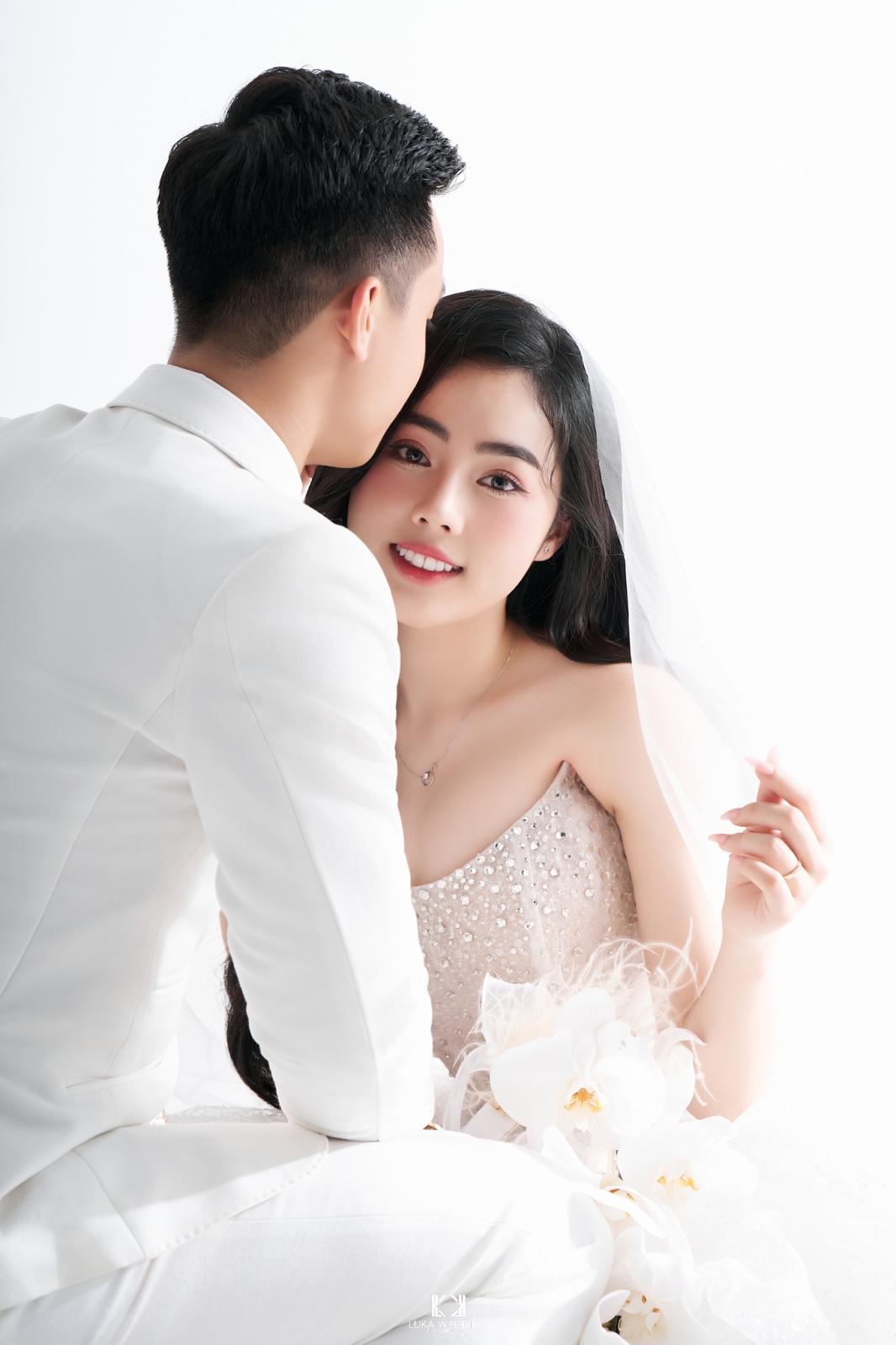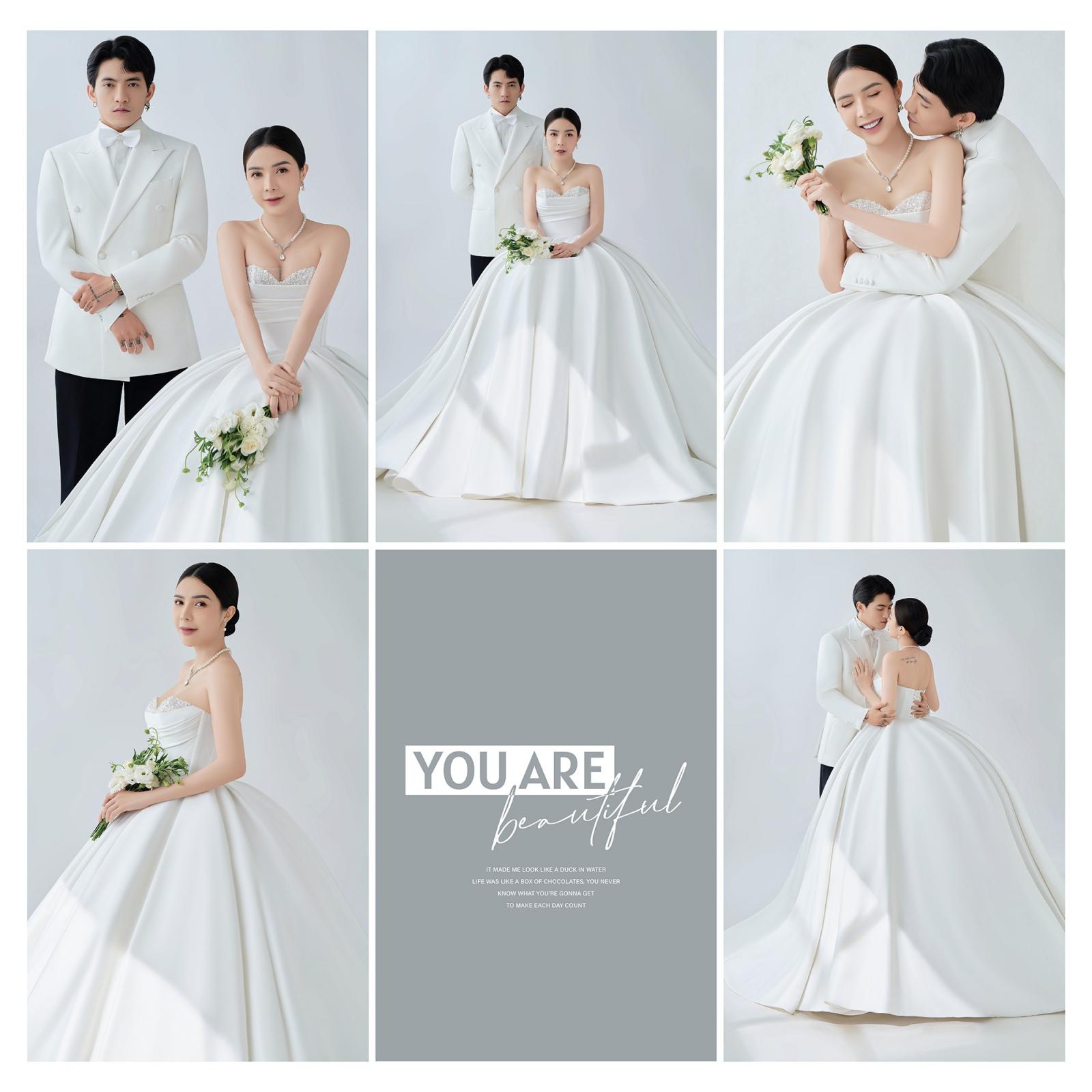 Không cần quá cầu kỳ, cũng không cần đi một nơi thật xa, chỉ cần tình yêu hiện hữu thì bối cảnh tối giản tại studio cũng có thể tạo nên những thước ảnh long lanh mãn nguyện.