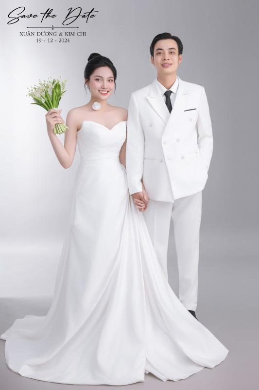 Không cần quá nhiều chi tiết cầu kỳ, chiếc váy vẫn khiến người đối diện phải ngẩn ngơ bởi sự tối giản mà tinh tế – như chính vẻ đẹp tự nhiên và tự tin của nàng trong ngày trọng đại.