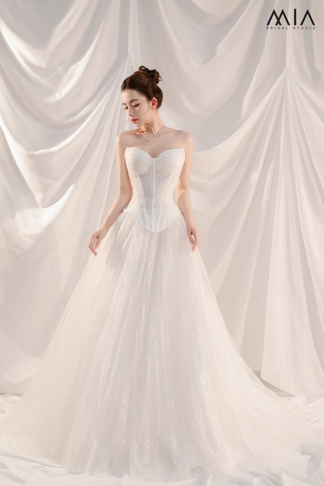 Nếu nàng đang tìm kiếm một thiết kế mang vẻ đẹp hiện đại nhưng vẫn giữ được sự tinh khôi, thanh thoát – thì chiếc váy này của Mia Bridal chính là lựa chọn hoàn hảo.