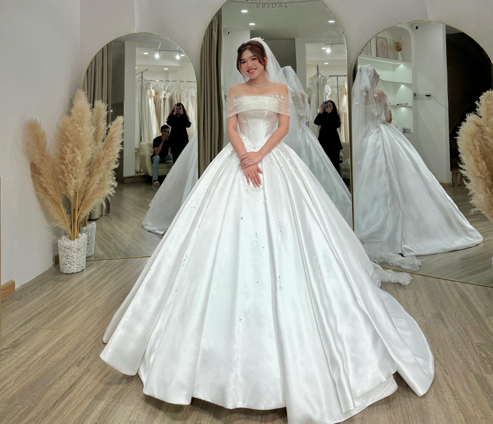 Khi nàng khoác lên mình Jaimin Dress, thiết kế không chỉ giúp nàng tỏa sáng mà còn khẳng định phong cách độc đáo và khí chất riêng biệt giữa bầu không khí lãng mạn trên lễ đường.