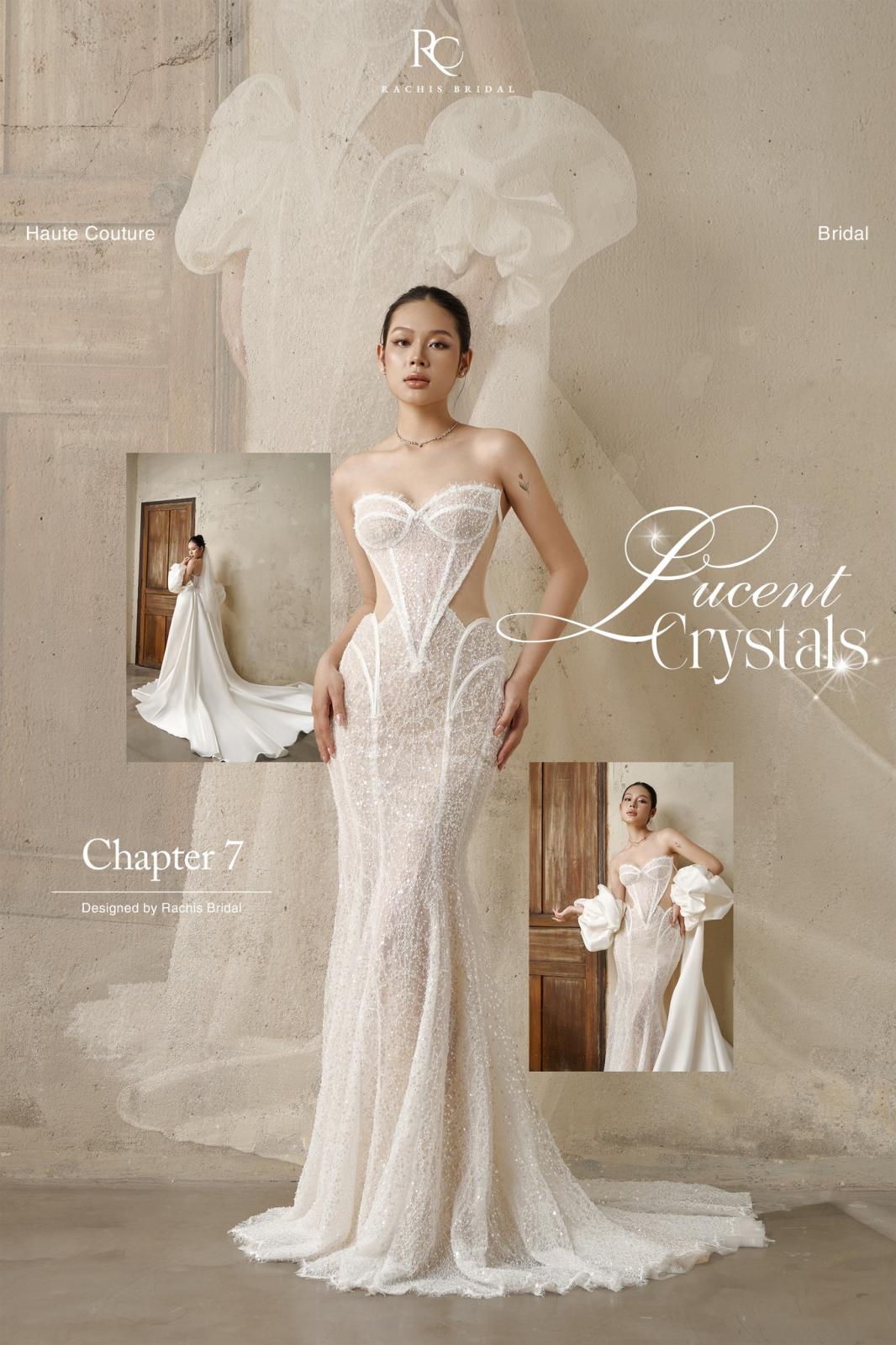 Lucent Crystal Chapter 7 dung hòa giữa sự mềm mại và tinh thần phá cách vừa đủ. Mời nàng ghé showroom Rachis Bridal để trực tiếp cảm nhận vẻ đẹp của chiếc váy nhé.