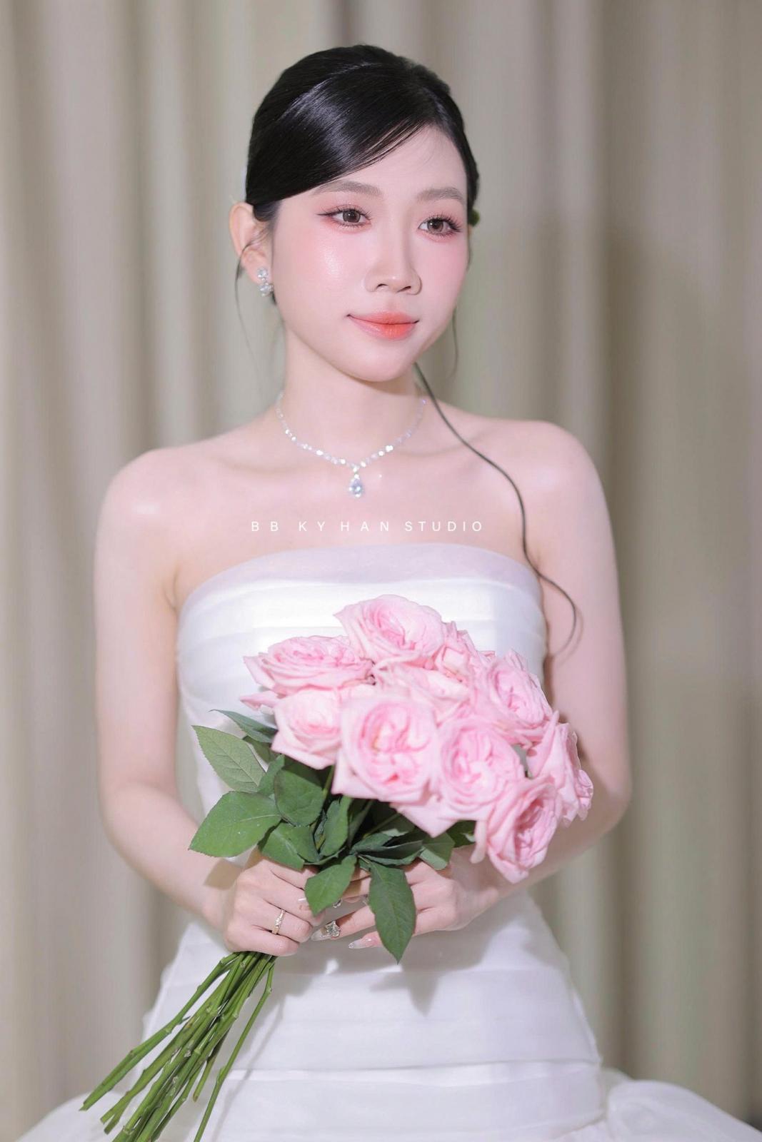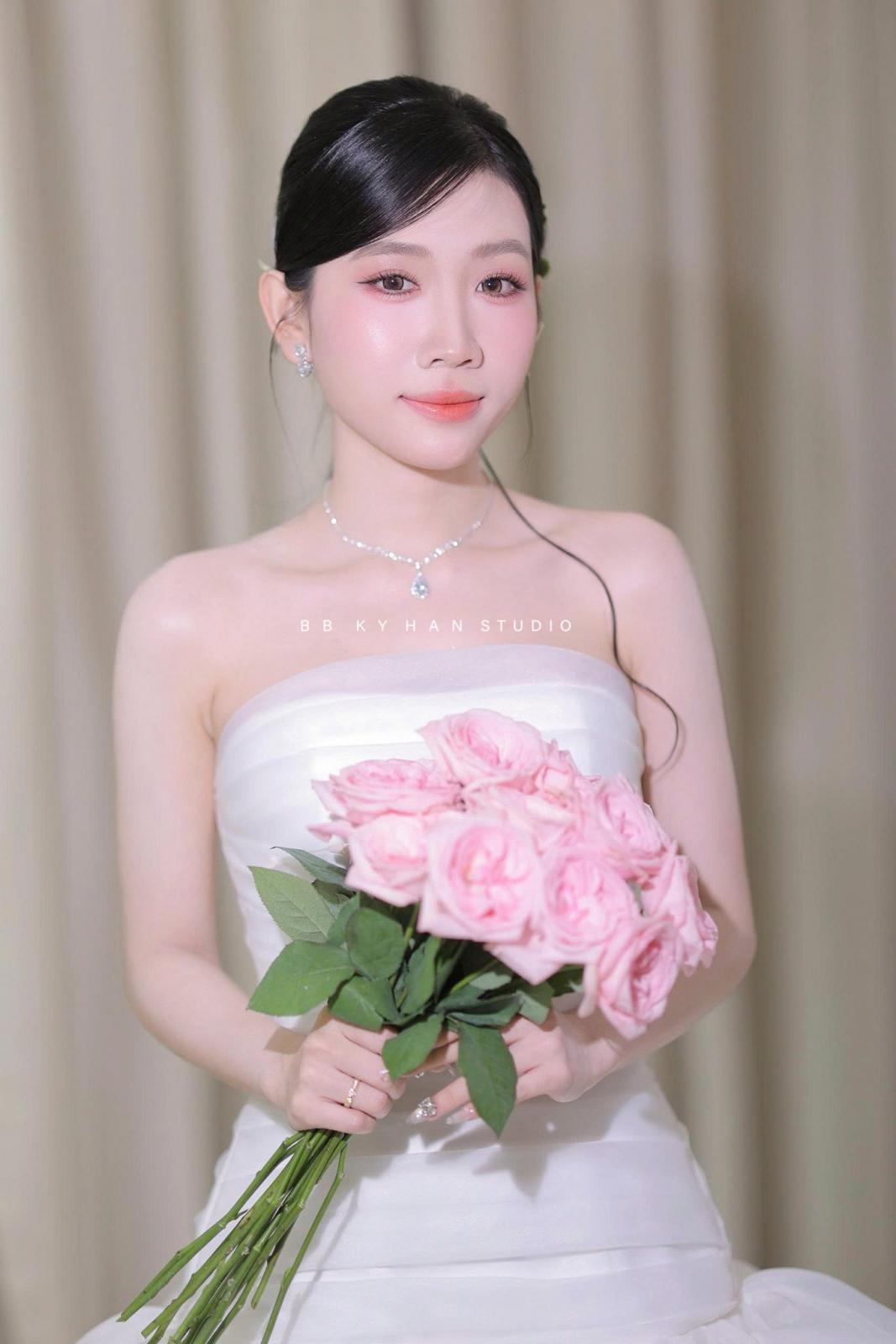 Makeup tone Hồng Cam nhẹ nhàng cho nàng dâu chụp tại studio style Hàn