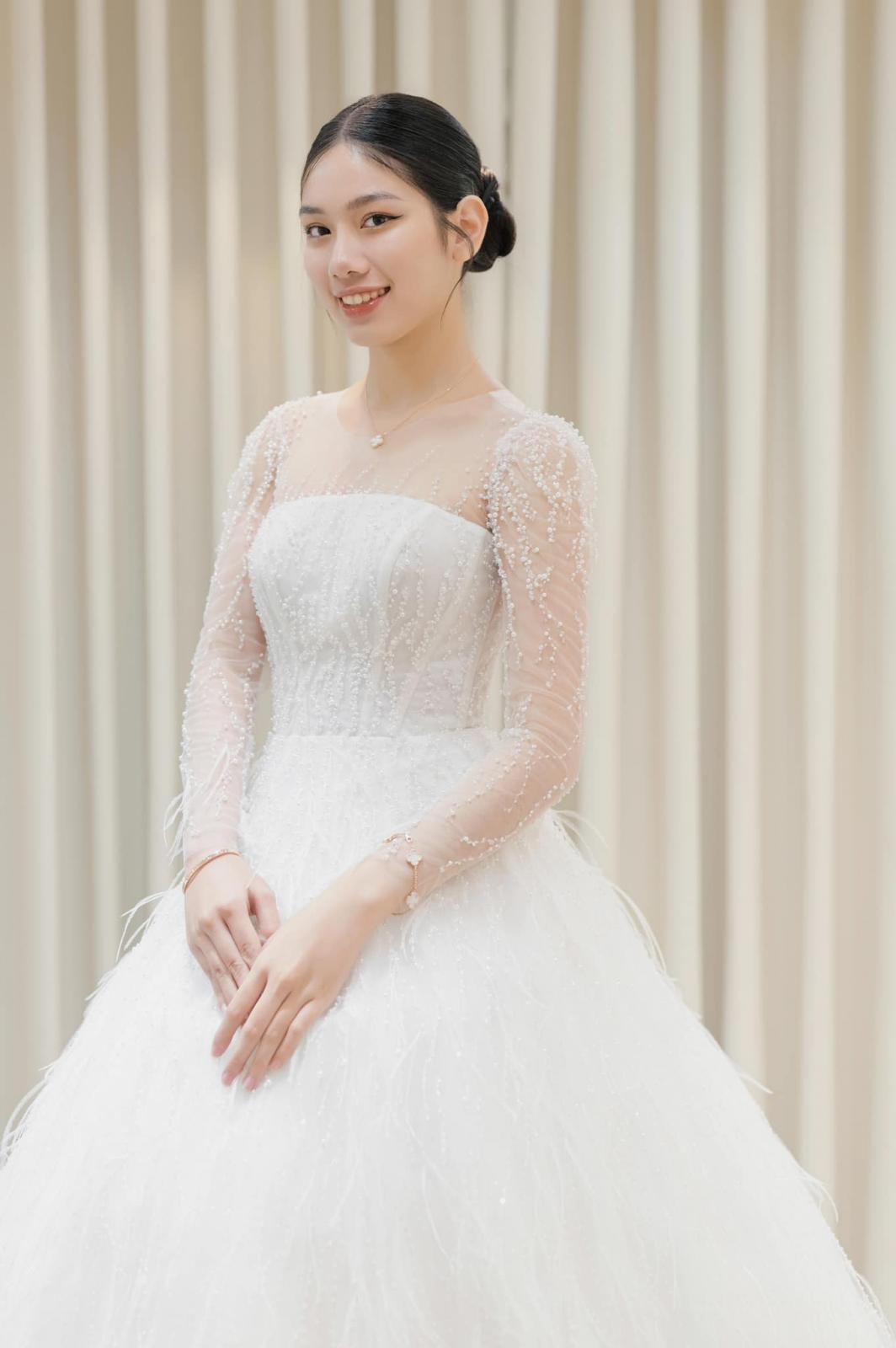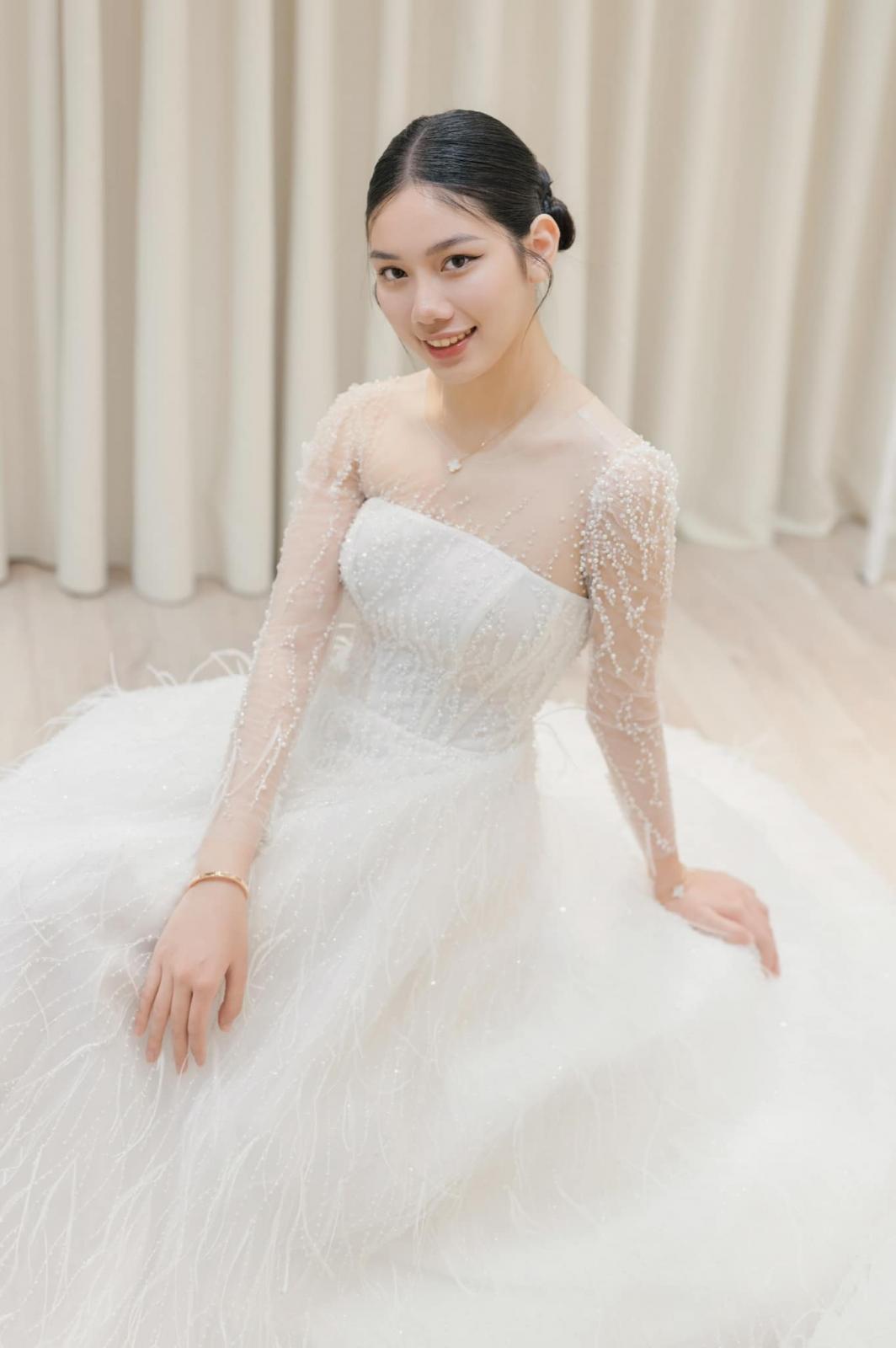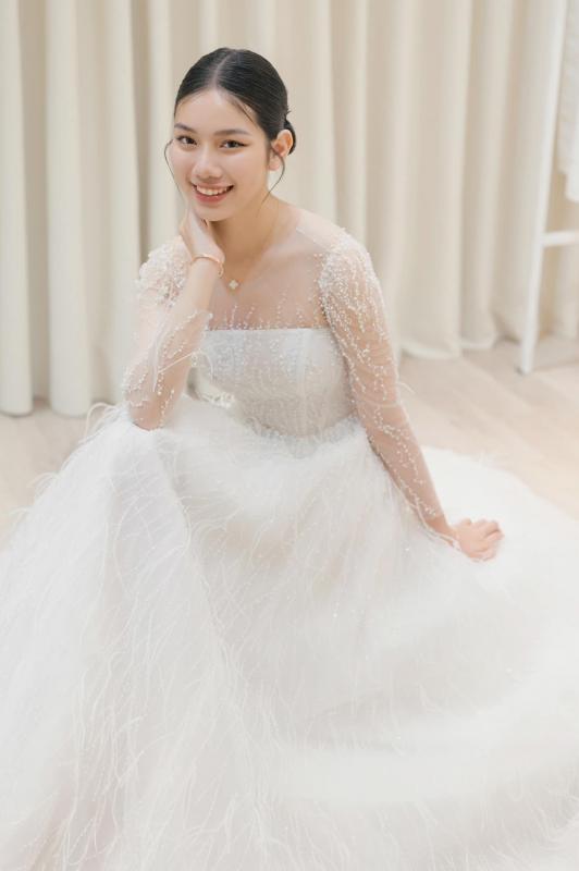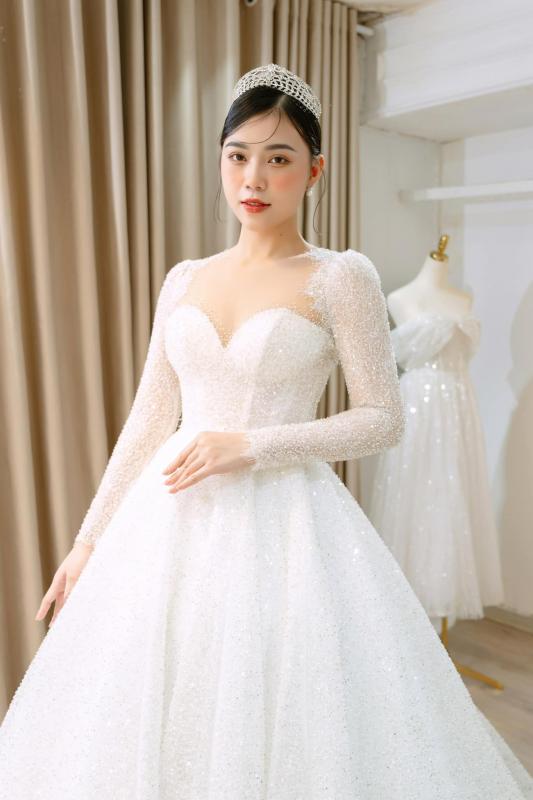 Váy cưới xoè vừa với phần tay bồng nhẹ nhàng
