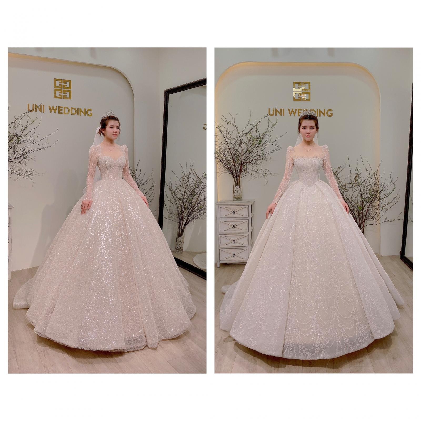 🍃 1 chiếc váy cưới thật lộng lẫy, lấp lánh để trông mình như nàng công chúa thực thụ.