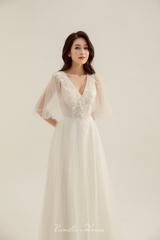 Dù là chất liệu ren hay satin hay oganza tơ thì lên phom của các mẫu thiết kế Vanilla House vẫn luôn chỉnh chu và thanh lịch.