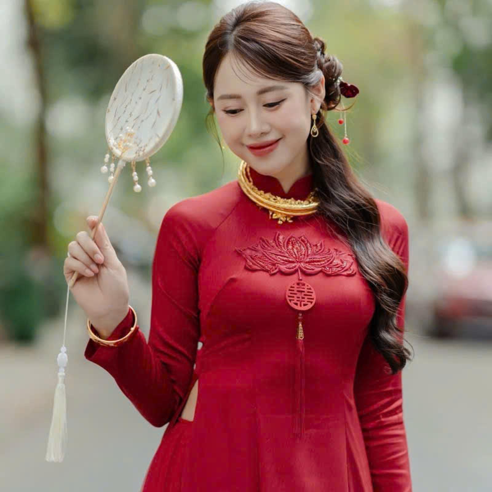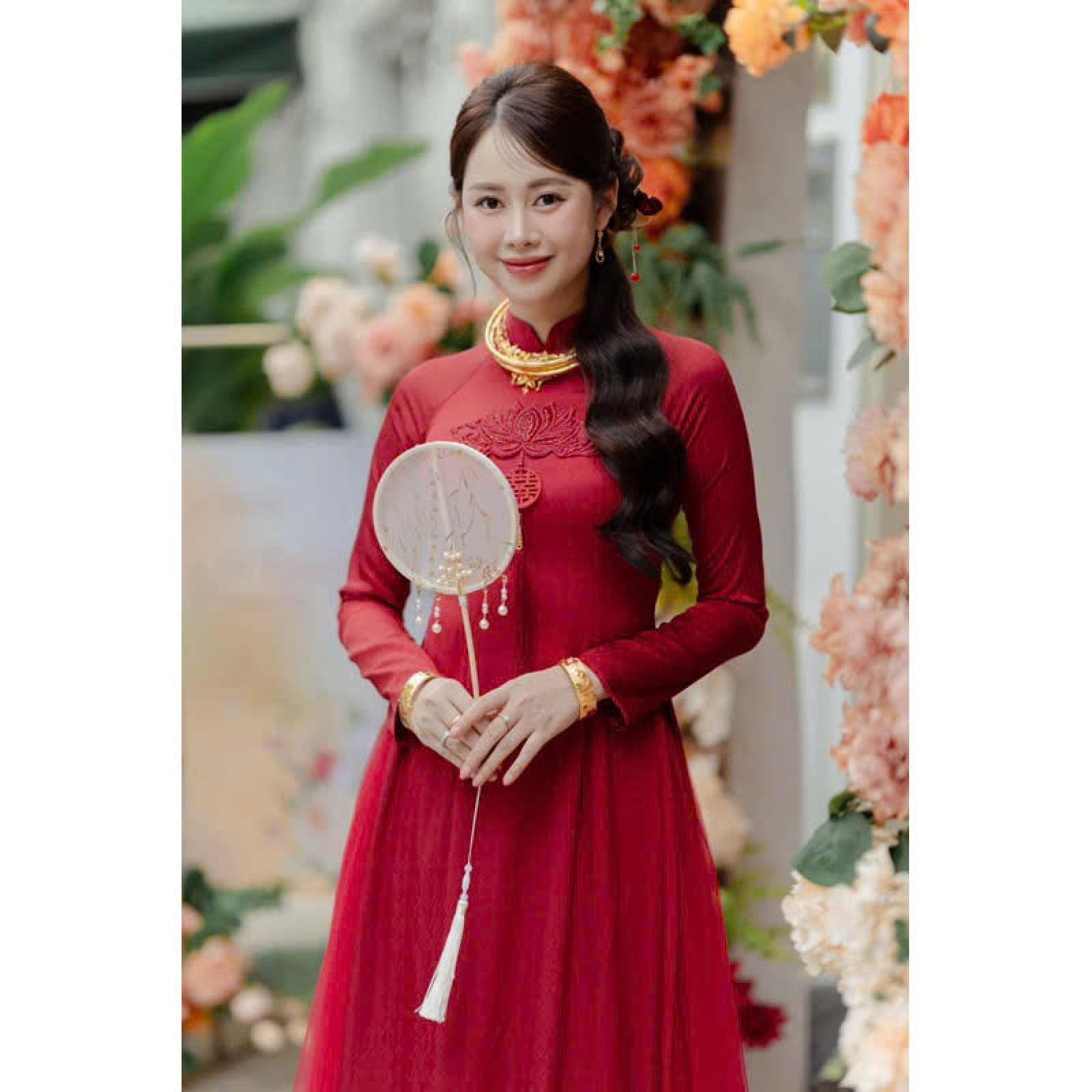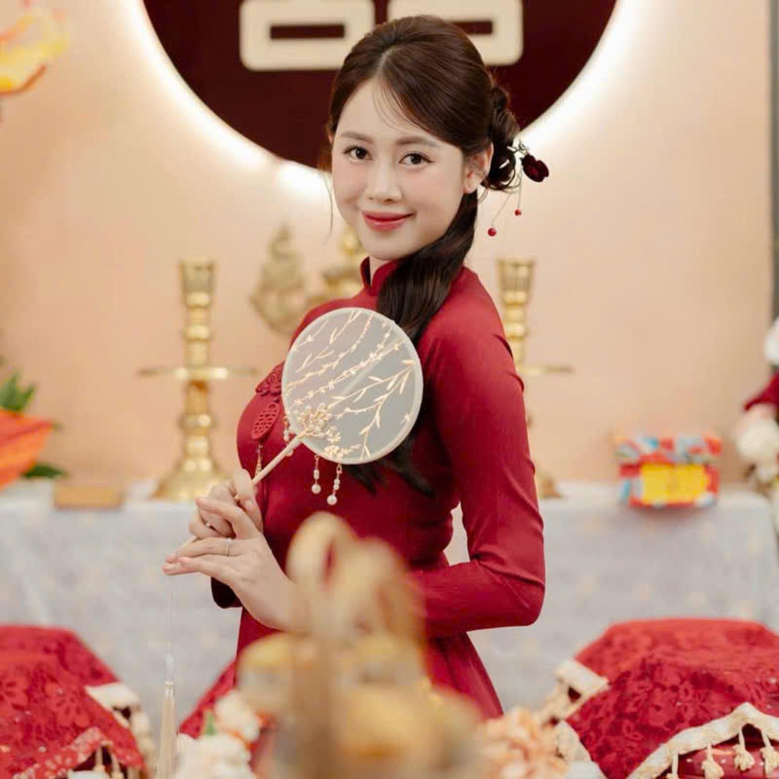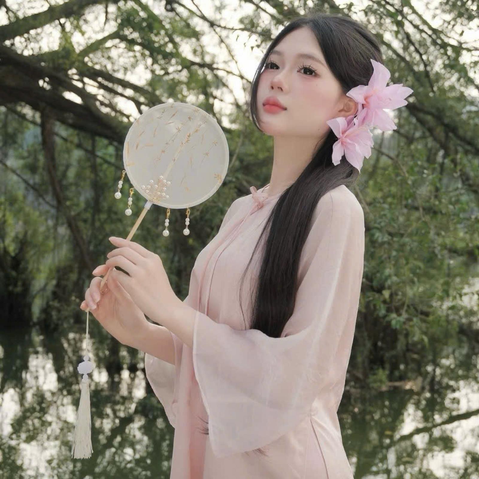 Quạt tròn cầm tay cô dâu trắng hoa phối tua rua.