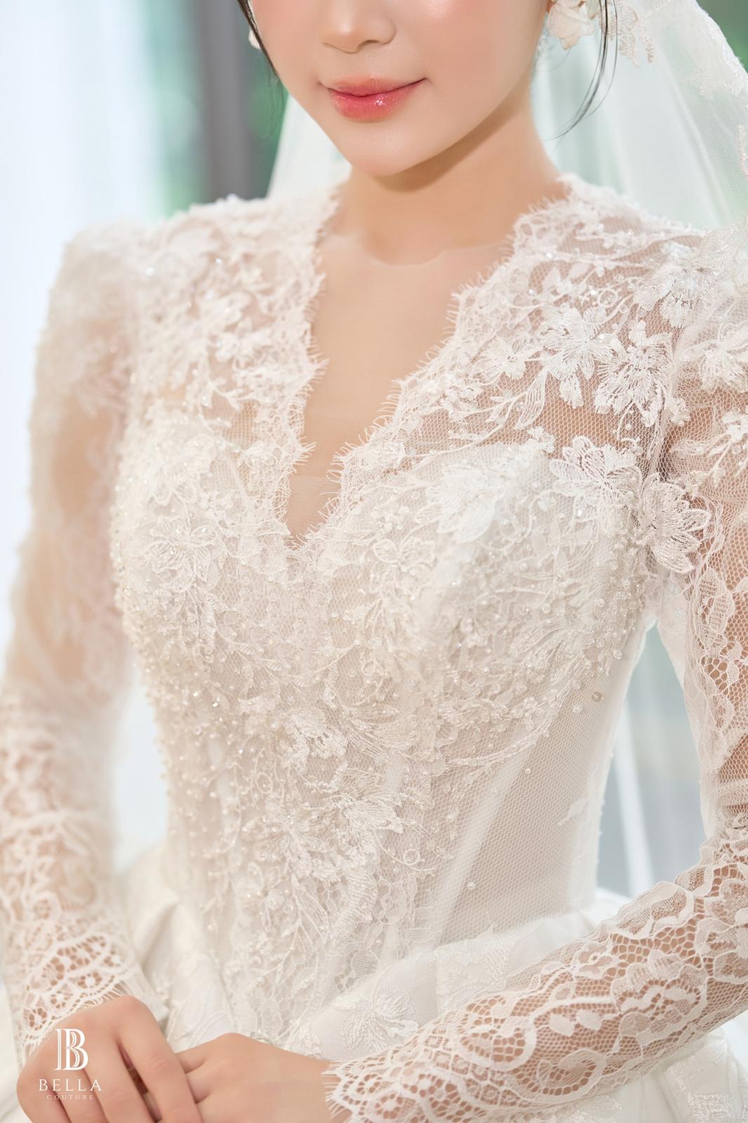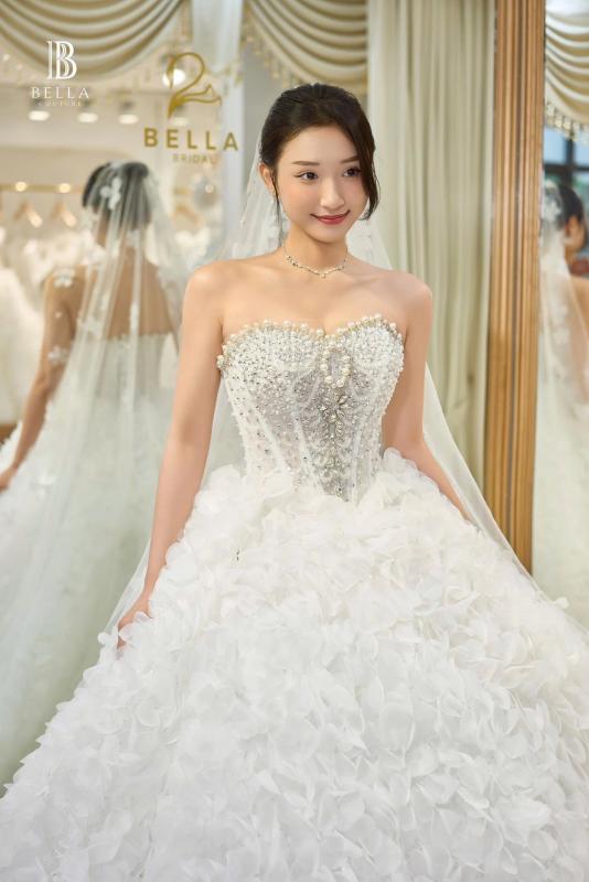Nàng đang tìm kiếm một thiết kế váy cưới thật nhẹ nhàng nhưng vẫn toát lên sự sang trọng, tinh tế. Thiết kế xoè nhẹ của Bella Couture chính là lựa chọn hoàn hảo.
