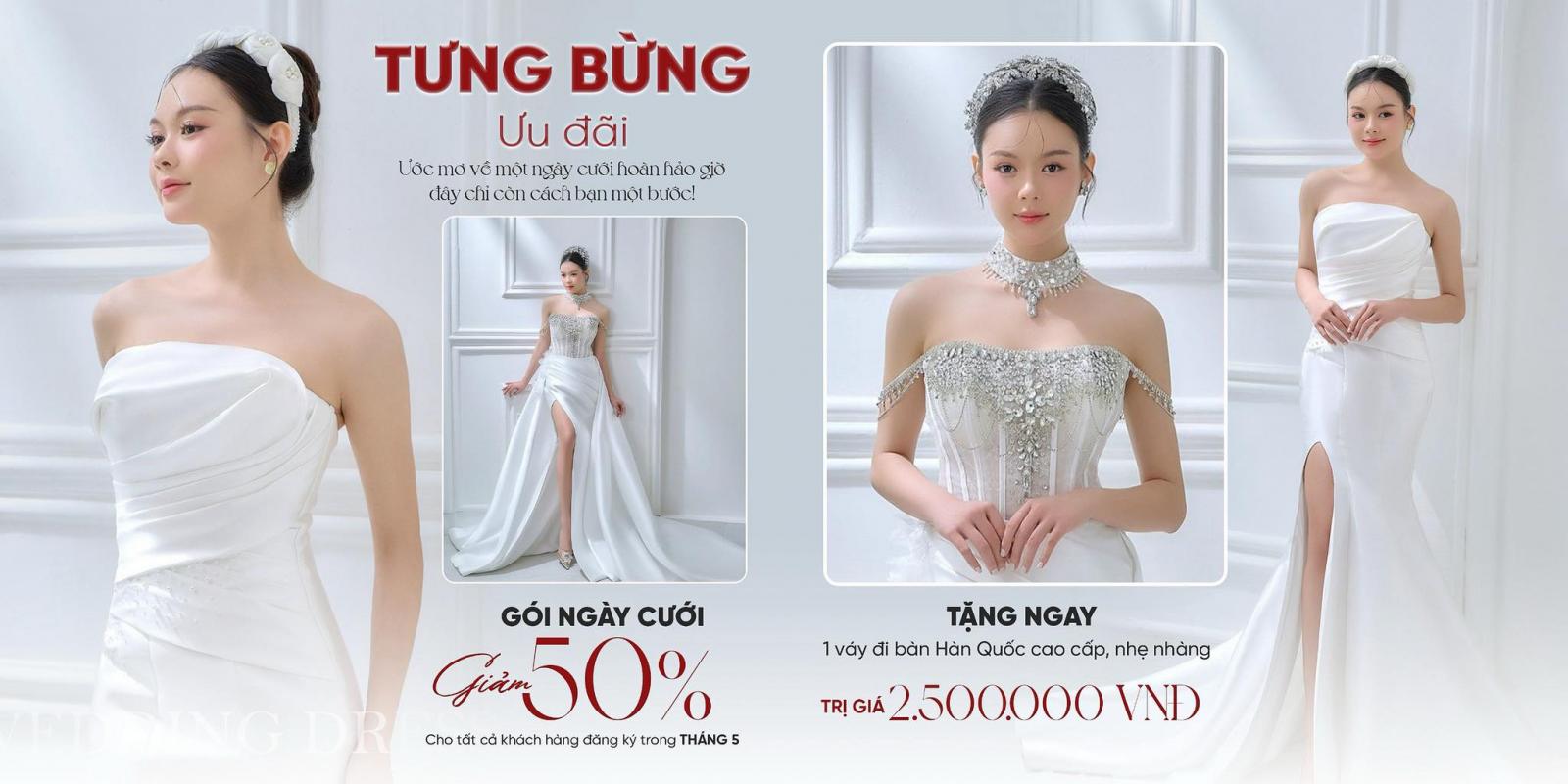 Đặt lịch thử mẫu váy cưới để nhận ưu đãi giảm 30%