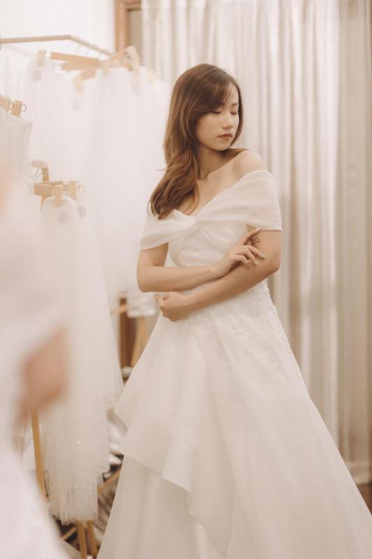 Nàng dâu Mai cùng chồng có xem thêm một vài lựa chọn khác nhưng cuối cùng vẫn quay lại với lựa chọn đầu tiên nhất vì 𝐋𝐮𝐜𝐢𝐚 𝐆𝐨𝐰𝐧 quy tụ nhiều điểm thỏa được các tiêu chí chiếc váy "the one" của Mai: