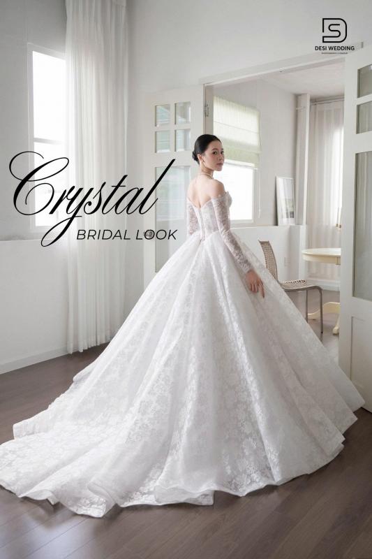 𝐂𝐫𝐲𝐬𝐭𝐚𝐥 𝐄𝐥𝐞𝐠𝐚𝐧𝐜𝐞 gợi lên hình ảnh về một vẻ đẹp nhẹ nhàng, thanh lịch nhưng vẫn đầy sức hút. Trên nền chất liệu ren cao cấp, từng chi tiết, đường nét trên váy được xử lý tỉ mỉ tôn lên sự thanh lịch kiêu hãnh giữ nét nổi bật ngay từ ánh nhìn đầu tiên dành cho nàng dâu.
