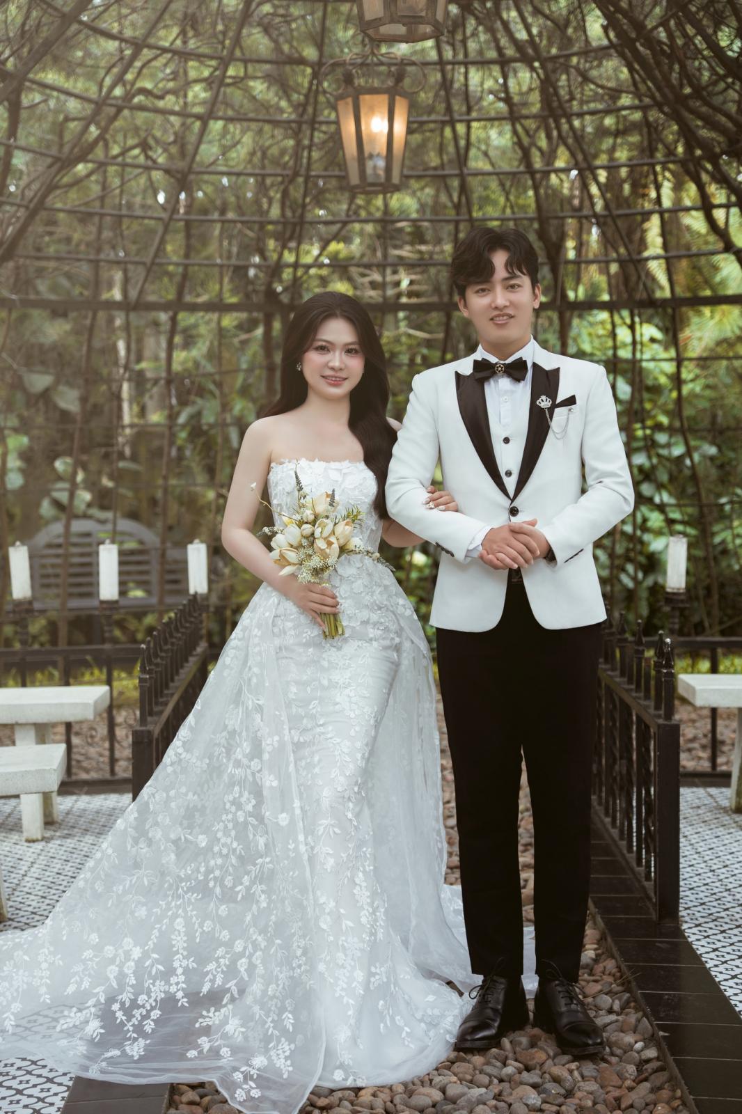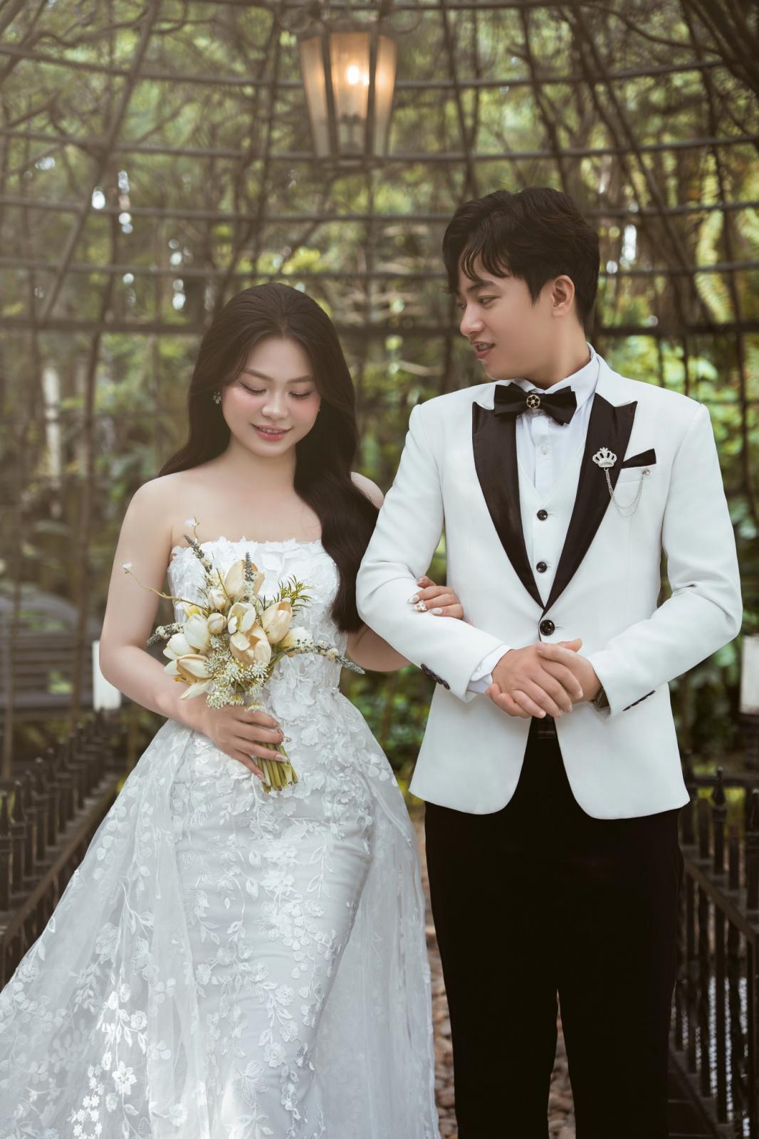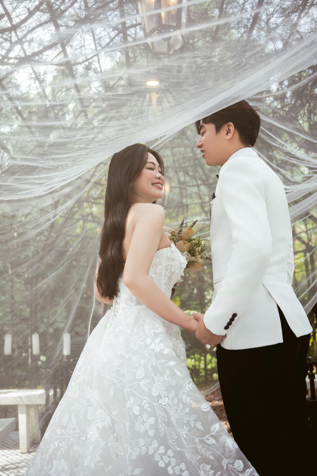 Giữa khung cảnh lãng mạn của phim trường Vũ Grand từng ánh nhìn, nụ cười của chú rể Minh Luân và cô dâu Thủy My như tan vào không gian tràn ngập sắc xanh và ánh sáng dịu dàng.