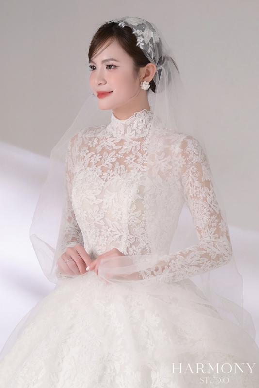 Cùng Harmony Wedding ngắm nhìn vẻ đẹp ngọt ngào thanh lịch của nàng dâu 𝑀𝑜̣̂𝑐 𝑇𝑟𝑎̀ trong shoot ảnh cưới chụp tại Studio nhé.