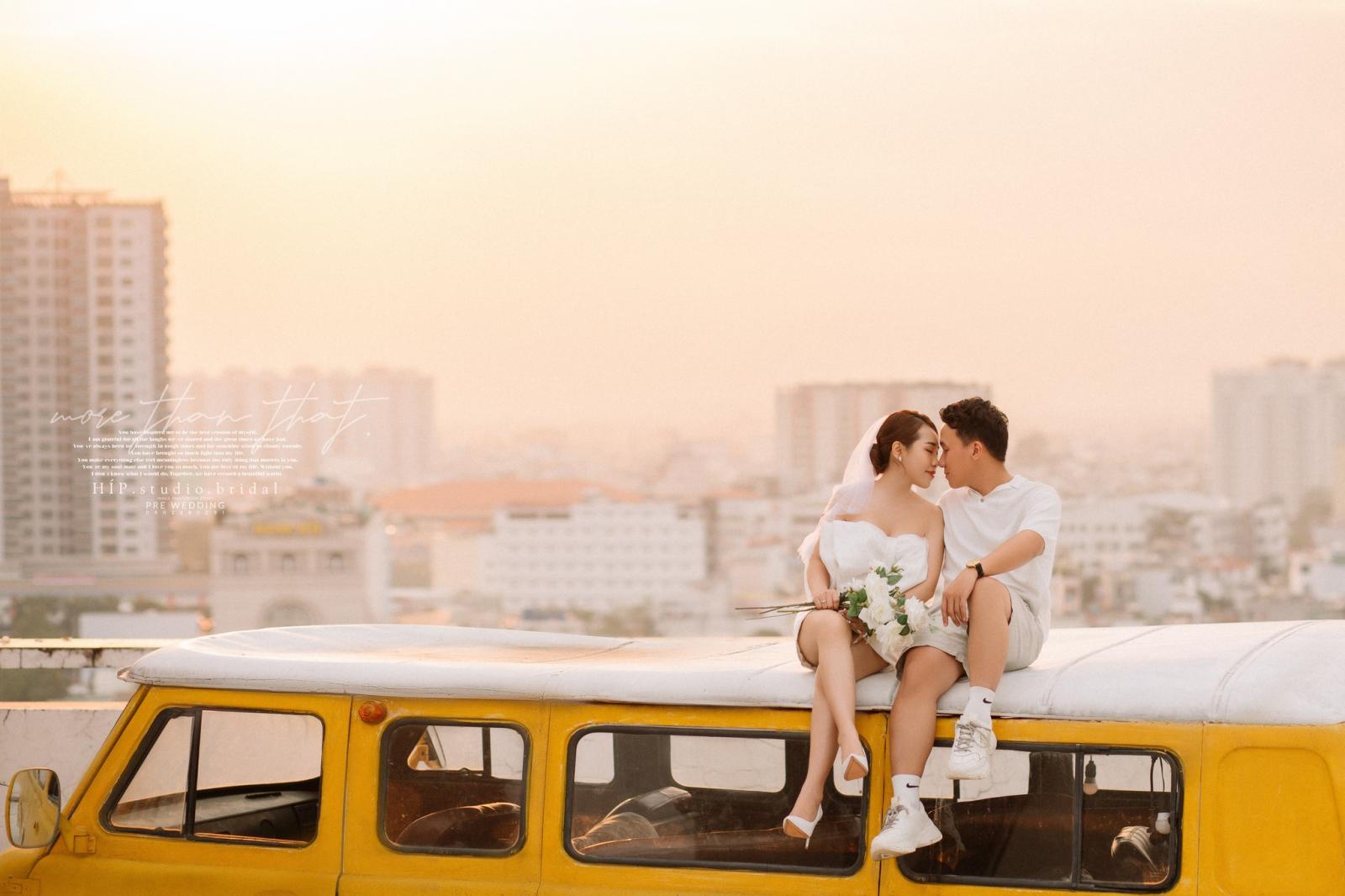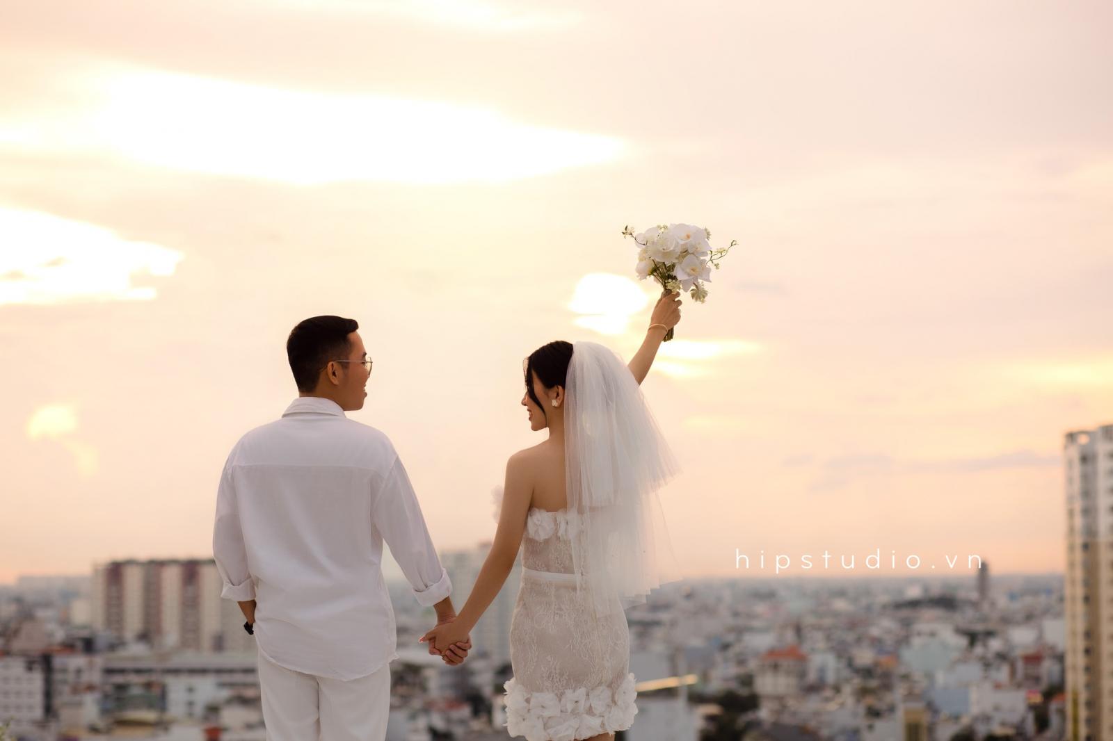 Book gói chụp studio còn được chụp view sân thượng ngắm toàn cảnh thành phố như này nữa nhé các dâu ơi 😍