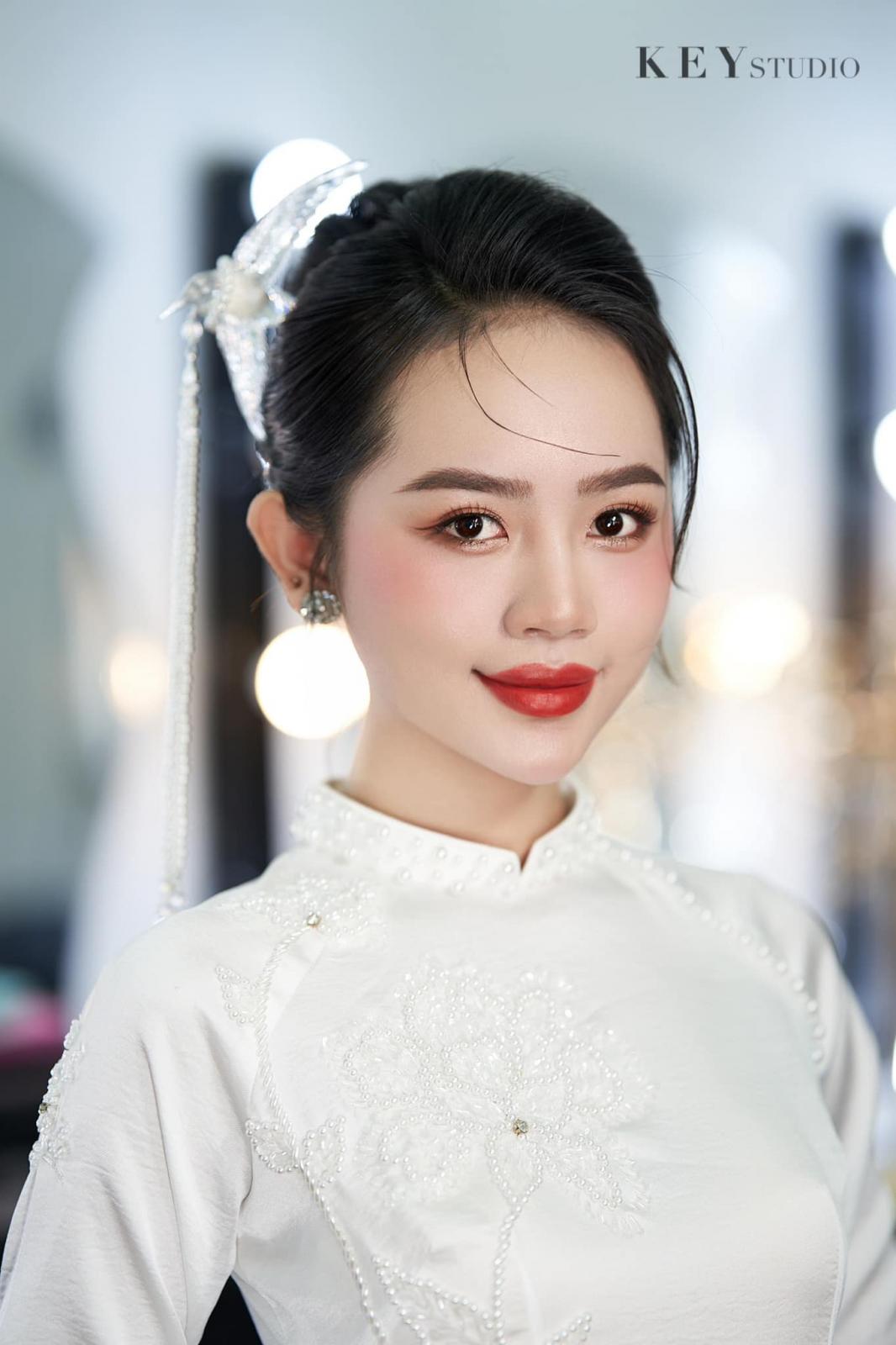 1 Trong những tone makeup và chiếc áo dài trắng kết hợp cùng 1 chiếc trâm cài tóc đang được các nàng dâu săn đón đây ạ