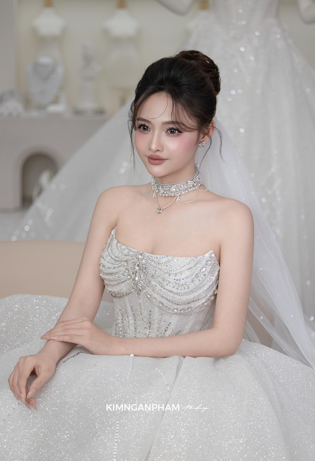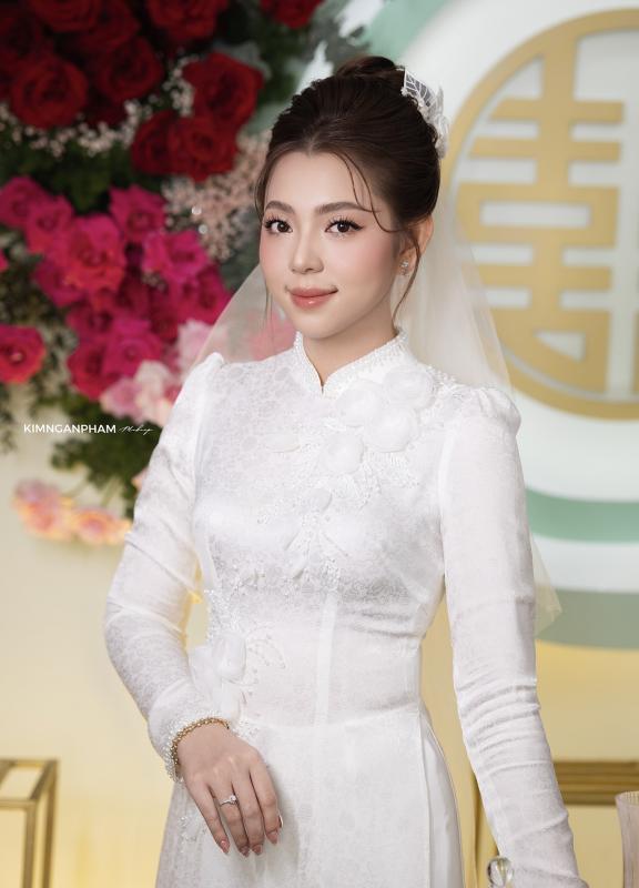 Kim Ngân Phạm Studio đã khéo léo lựa chọn tone makeup natural và kiểu tóc búi tóc cao thanh lịch, để cùng nàng dâu tỏa sáng trong ngày đặc biệt.