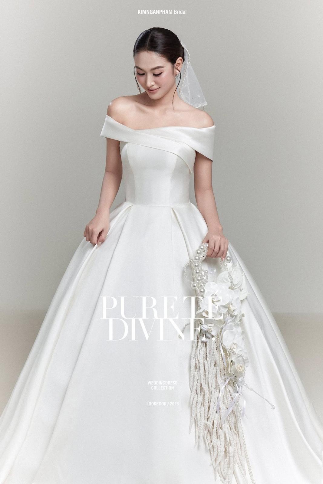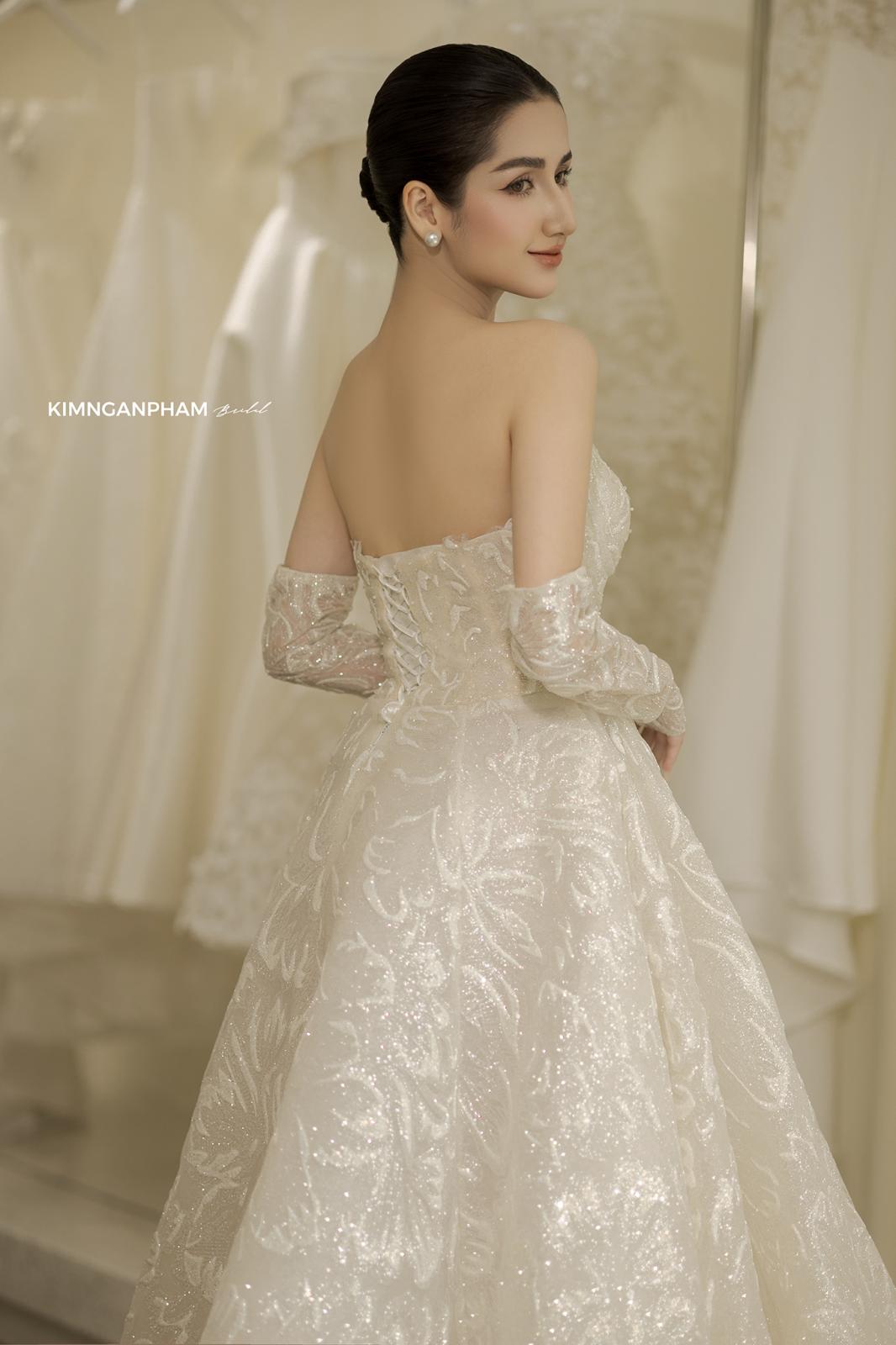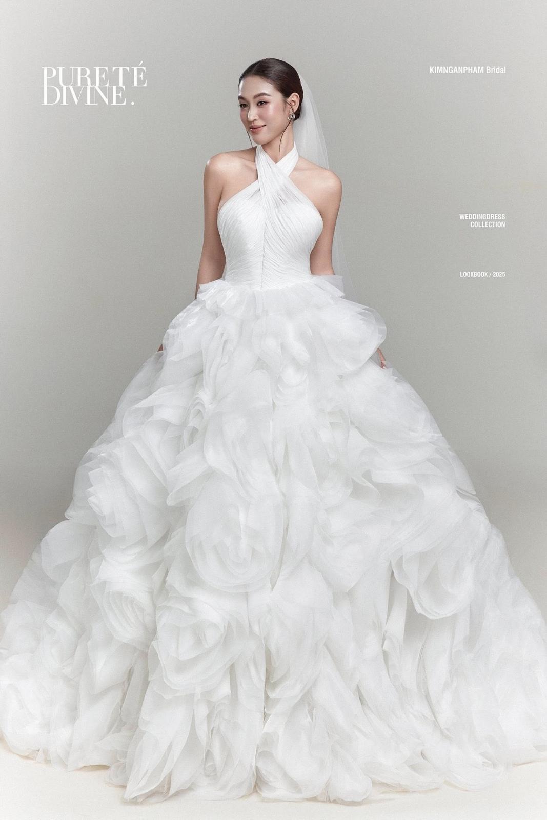Khác biệt với các mẫu váy cưới bồng bềnh cổ điển, Look 1 trong BST mới nhất của Kim Ngân Phạm được giản lược một số chi tiết đính kết, mang lại cảm giác mềm mại và phong cách hiện đại hơn.