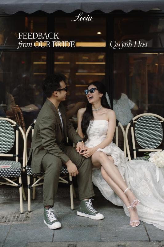 Là một cô dâu đặc biệt của Lecia, Quỳnh Hoa tỏa sáng gương mặt xinh đẹp và nụ cười tươi rạng rỡ. Lấy bối cảnh hoài niệm của Hà Nội để vẽ lên câu chuyện tình yêu, Quỳnh Hoa lựa chọn chiếc váy "The Rosé" - một thiết kế mini dress biểu tượng cho tinh thần tự do & phá cách trong bộ ảnh Pre-wedding.
