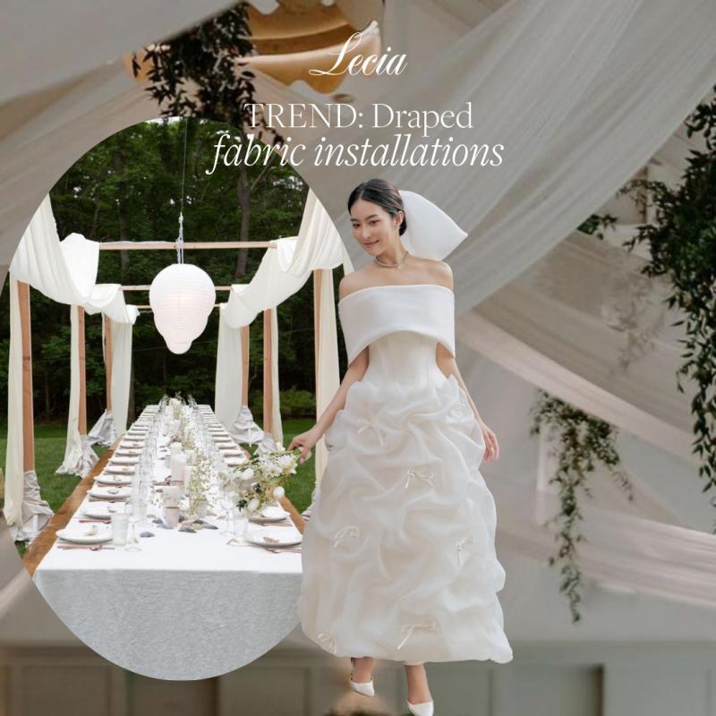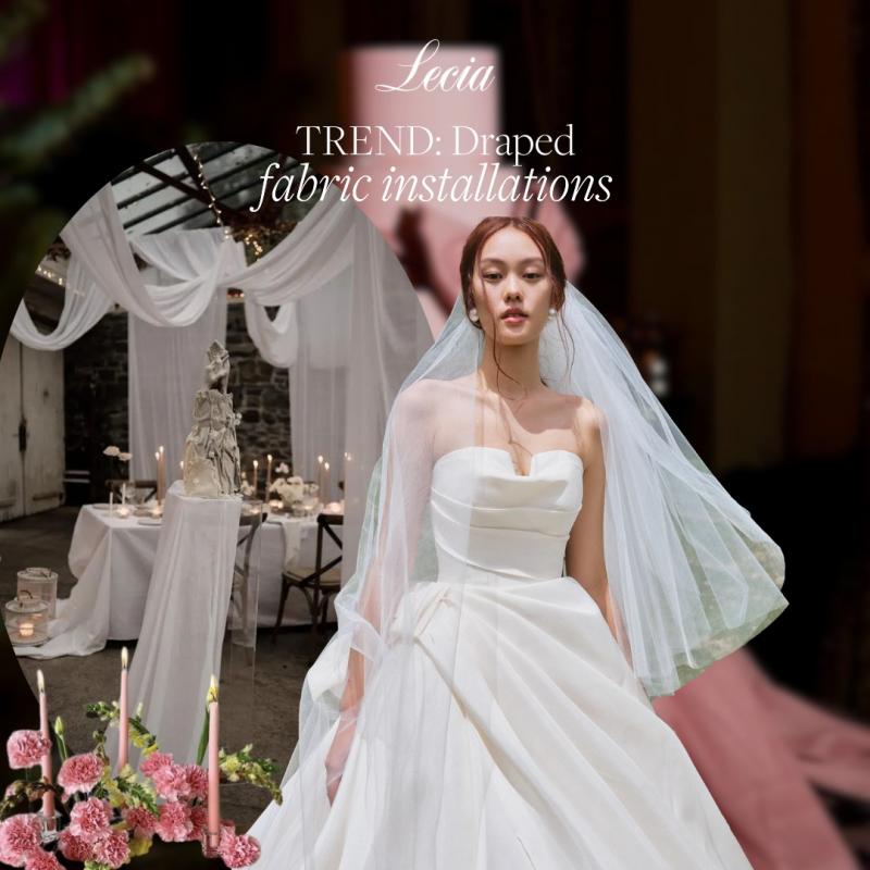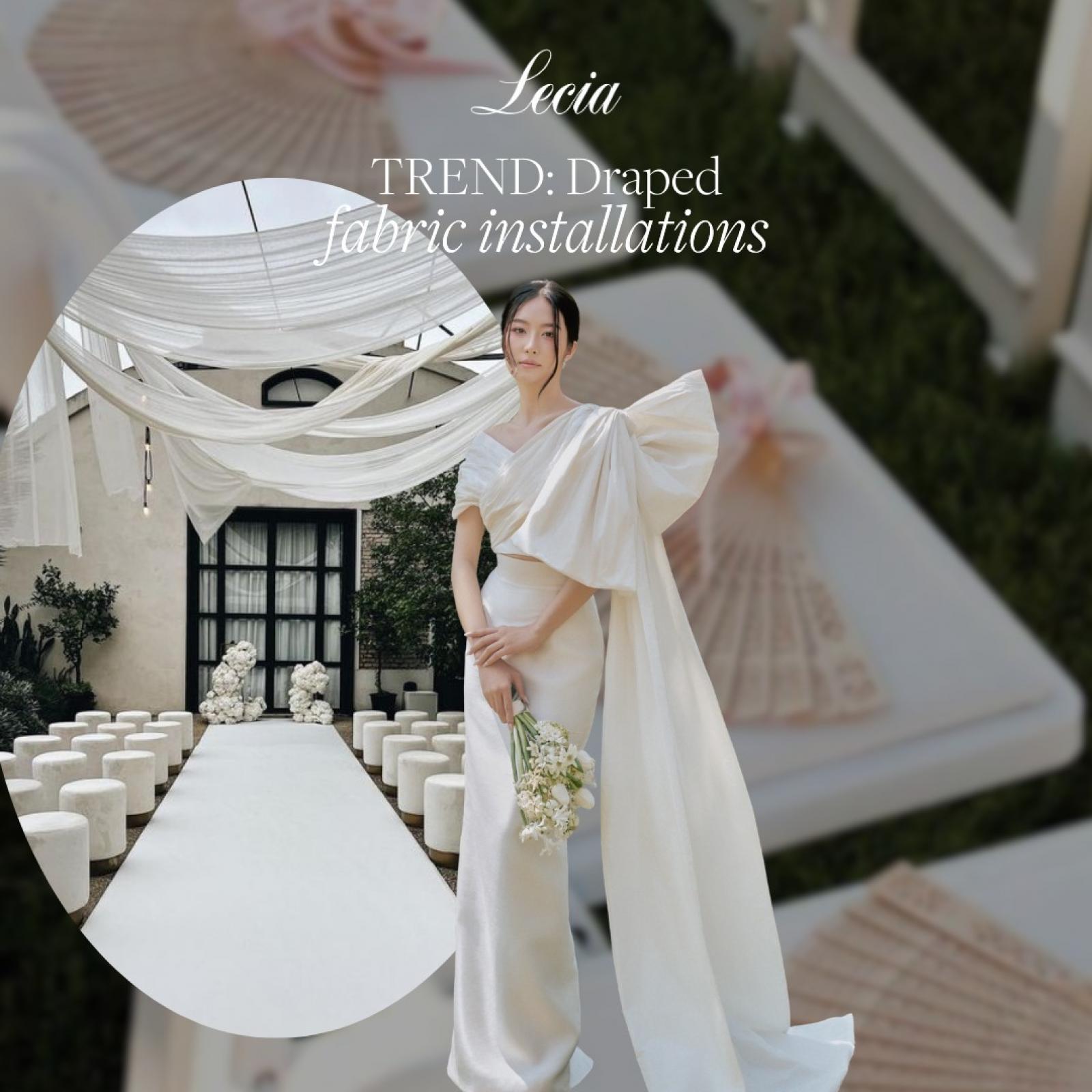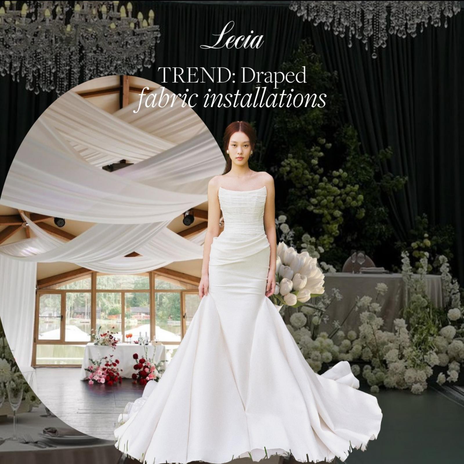 Được nhiều chuyên gia dự đoán sẽ trở thành TREND trong năm 2024/25, phong cách Baroque dần quay trở lại với "Draped Fabric Installations" (Chất liệu vải lượn sóng) xuất hiện nhiều trong những lễ cưới Quiet Luxury Wedding, sự kiện trang trọng hay trên sàn diễn thời trang.