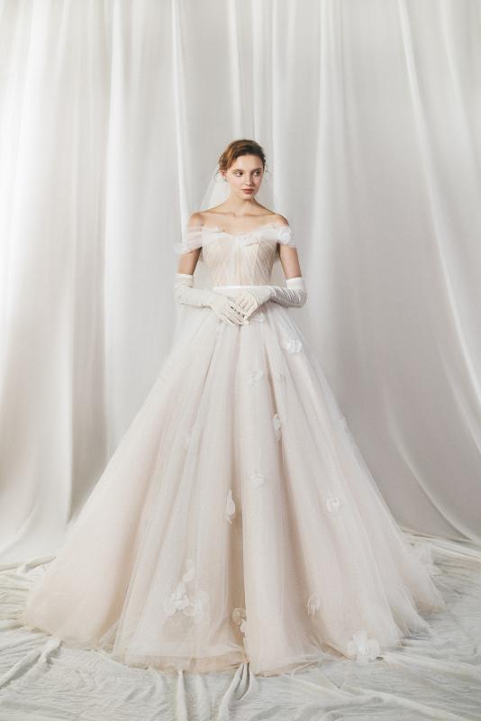 Nổi bật trên nền gấm lụa thời trang cưới bởi sự sang trọng, kiêu kì và mềm mại, chất liệu Tulle Ý gây ấn tượng với độ bền cao, không chỉ đem lại sự an tâm cho cô dâu trong ngày trọng đại mà còn giữ vững giá trị nguyên bản và vẻ đẹp vượt thời gian của chiếc váy.