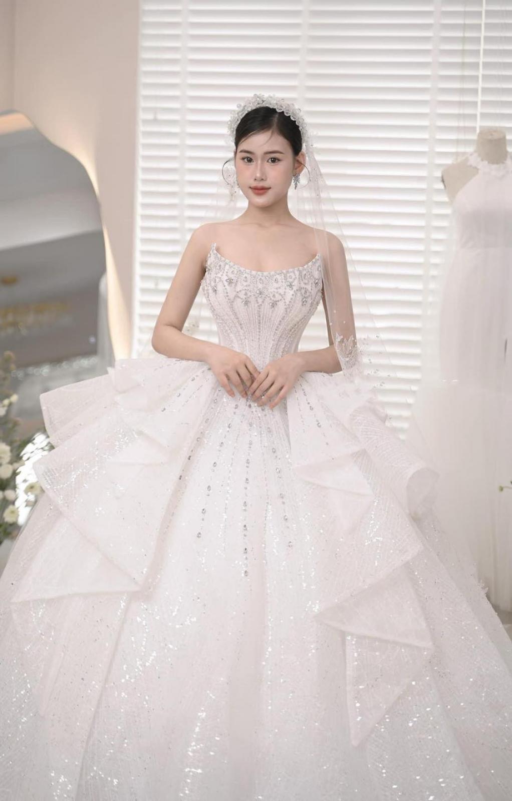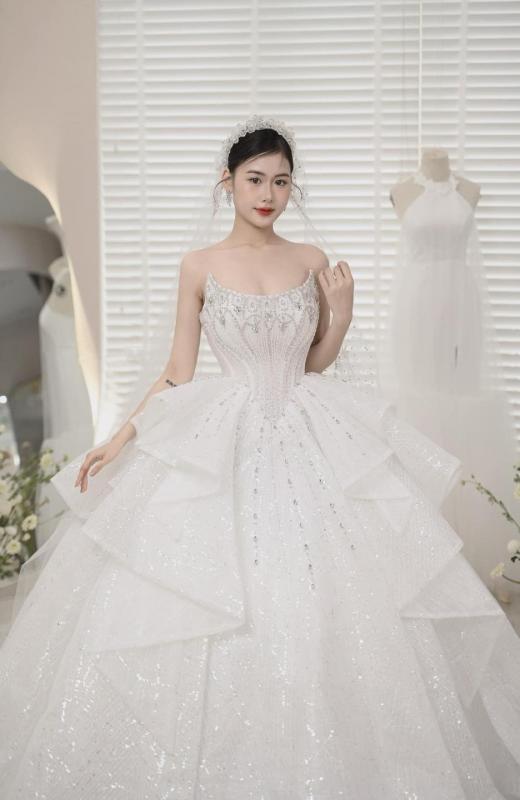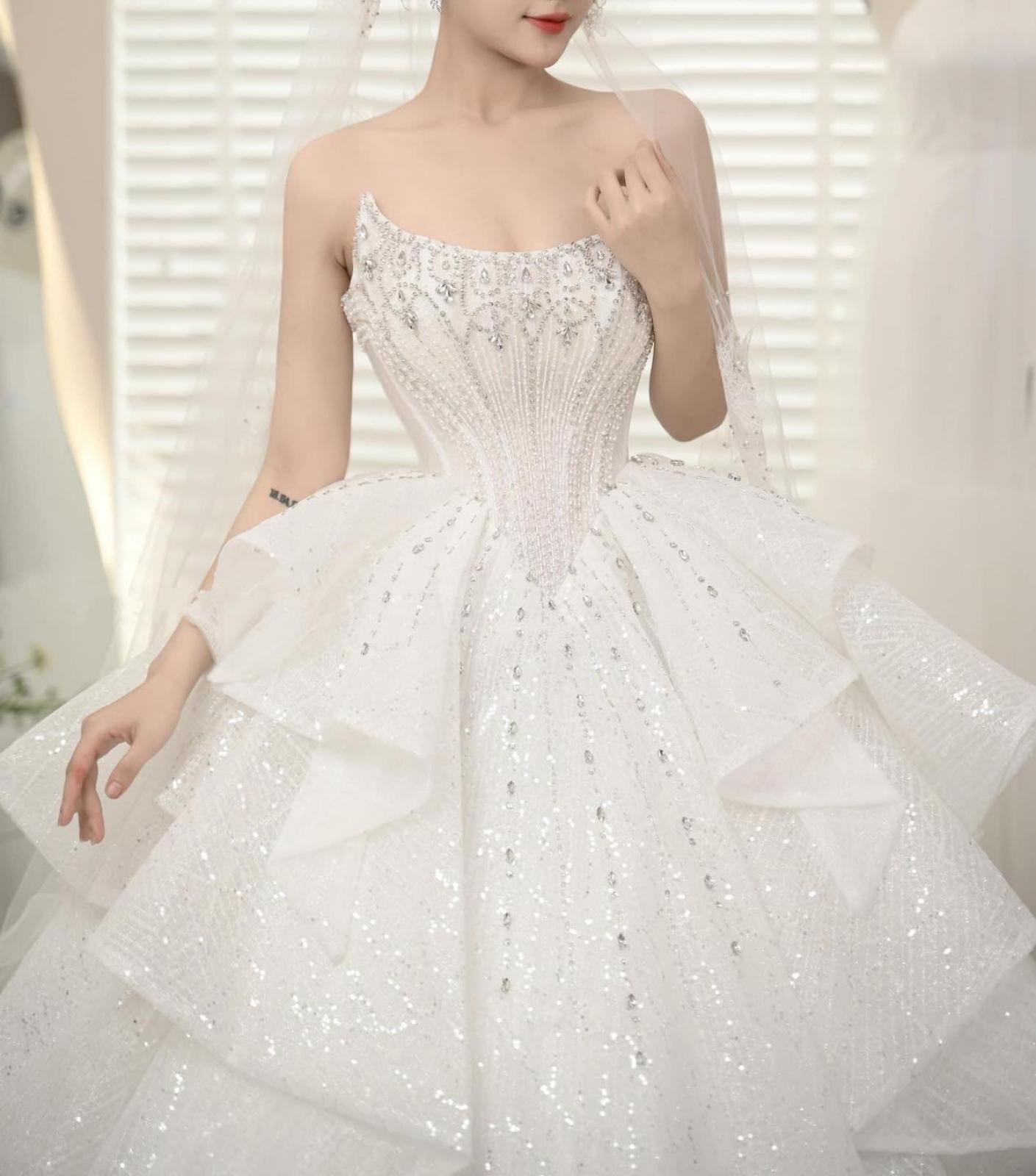 ❤️🔥 Chiếc váy cưới cúp ngực đính đá với điểm nhấn tập trung tại khu vực thân áo sẽ giúp nàng tỏa sáng rực rỡ trong ngày trọng đại. Từng viên đá lấp lánh tựa như những viên ngọc quý, mang đến vẻ sang trọng và đẳng cấp, khiến nàng trở thành tâm điểm của mọi ánh nhìn.