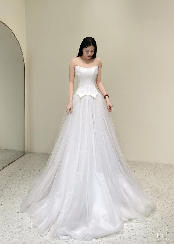 Chẳng cần đợi tới ngày cưới, các cô dâu của Luka Wedding vẫn dễ dàng trở thành công chúa trong chiếc váy cưới phù hợp với riêng nàng. Dù là váy cưới trễ vai ngọt ngào hay cúp ngực tinh tế, mỗi bộ váy đều giúp nàng khoe trọn ưu điểm cơ thể, và tạo cảm giác hiện đại nhưng vẫn vô cùng quyến rũ. Kết hợp corset siết eo liền thân, các cô dâu của Luka Wedding chắc chắn sẽ tự tin và tỏa sáng với vòng eo chuẩn 56 siêu mẫu.