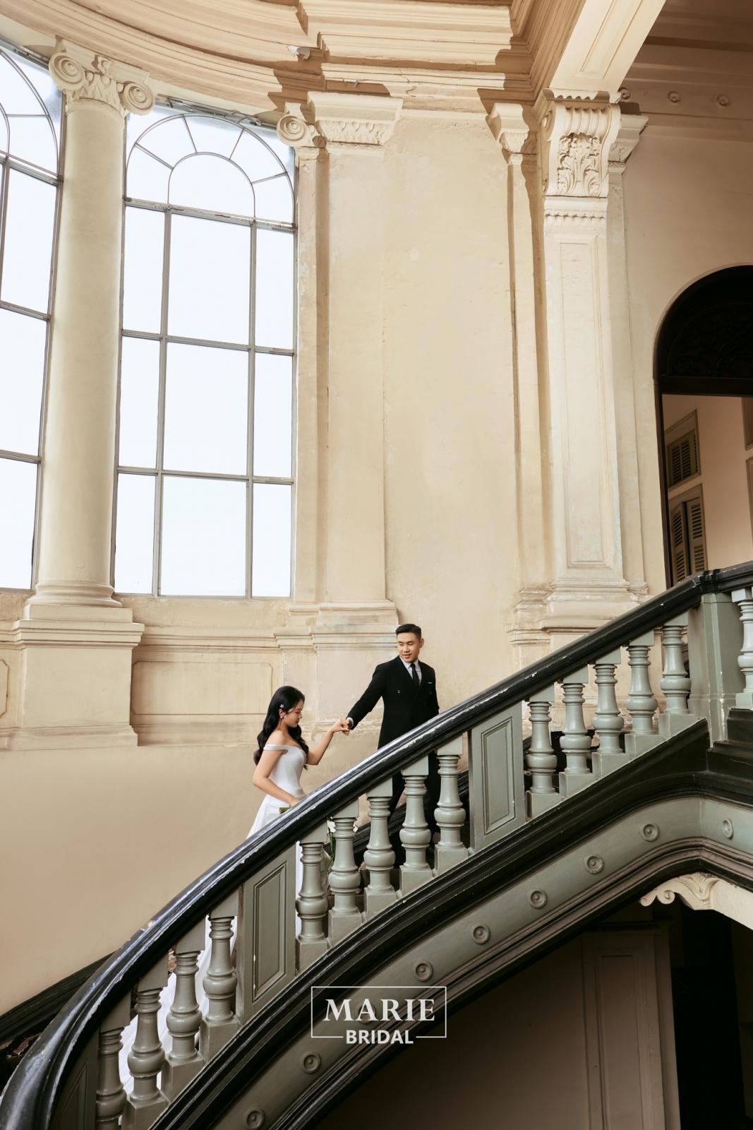 Phong cách hình cưới tại bảo tàng mang đến một vẻ đẹp vừa giản dị vừa thanh lịch, là sự kết hợp tinh tế giữa tình yêu và nghệ thuật. Trong không gian tĩnh lặng, sang trọng của bảo tàng, từng khung hình được thổi hồn bởi ánh sáng tự nhiên từ những ô cửa kính tạo nên một bức tranh cổ điển và kiến trúc uy nghi.