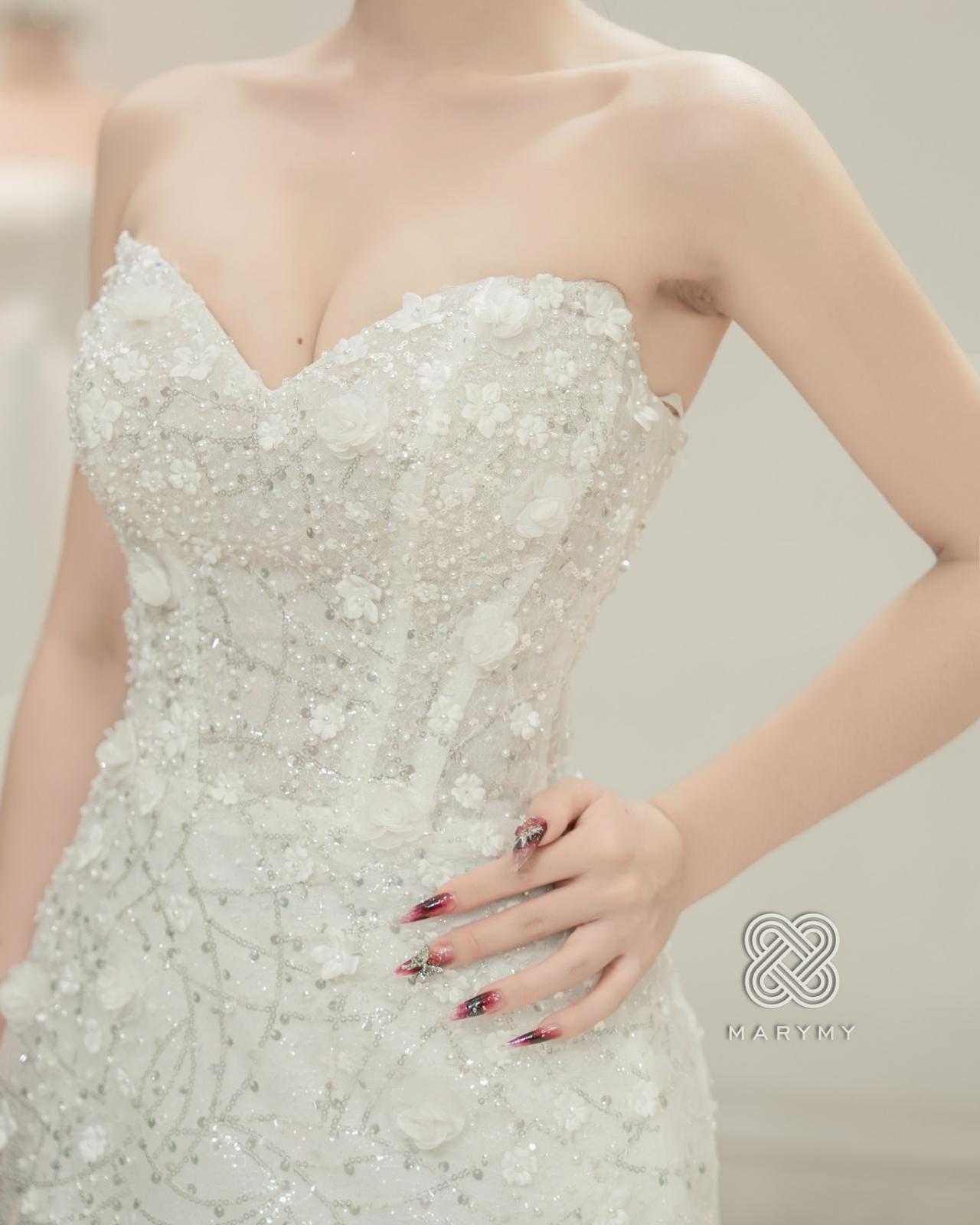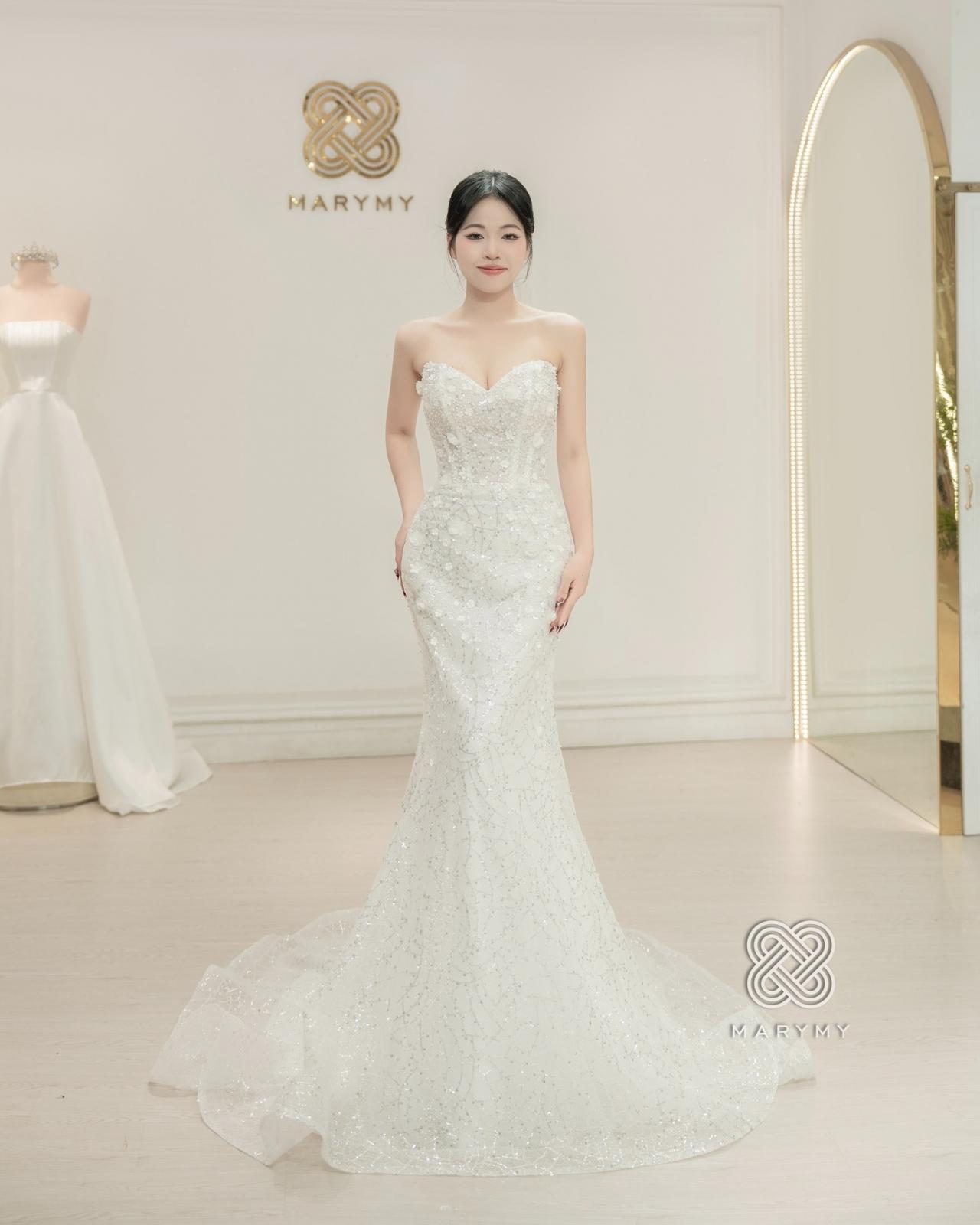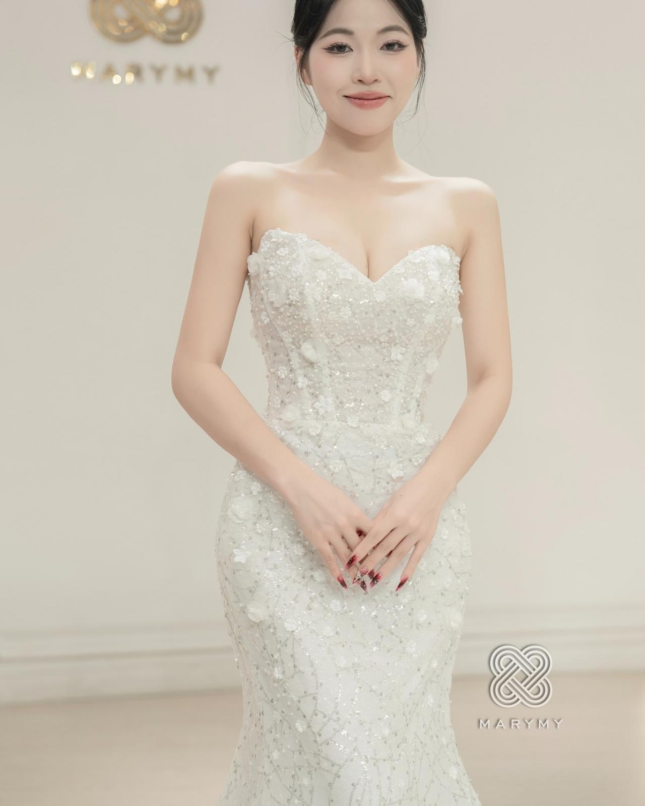 Look 5 là lựa chọn dành cho những nàng dâu yêu vẻ đẹp tinh tế, sang trọng nhưng vẫn giữ trọn nét thuần khiết và lãng mạn – một khoảnh khắc rực rỡ, nhẹ tênh và đầy cảm xúc khi bước vào lễ đường 🤍✨