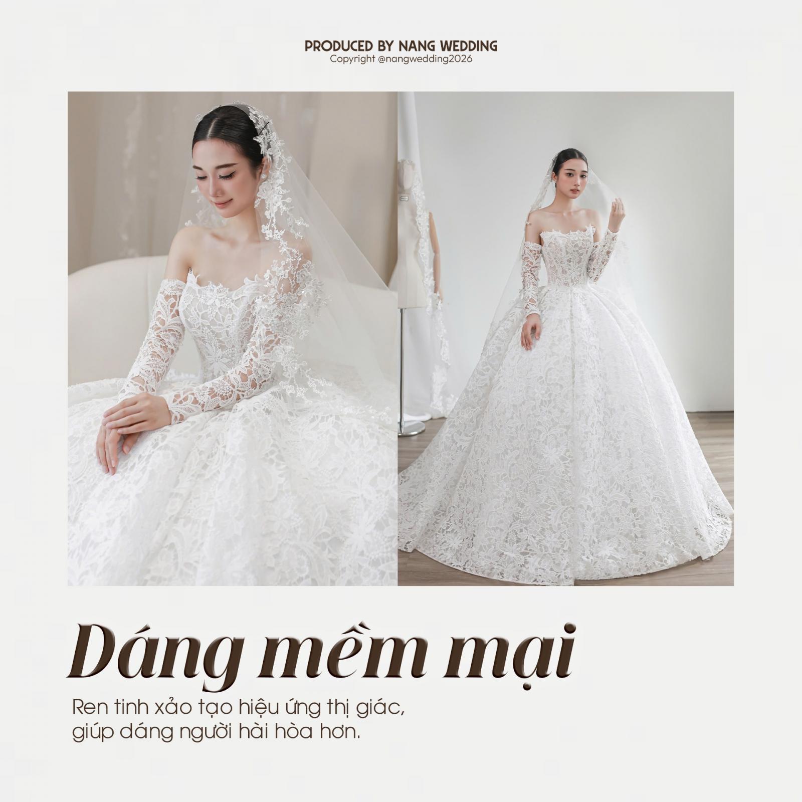 Ren mang đến cảm giác dịu dàng, mềm mại nhưng vẫn giữ trọn vẻ tinh tế và sang trọng cho cô dâu.