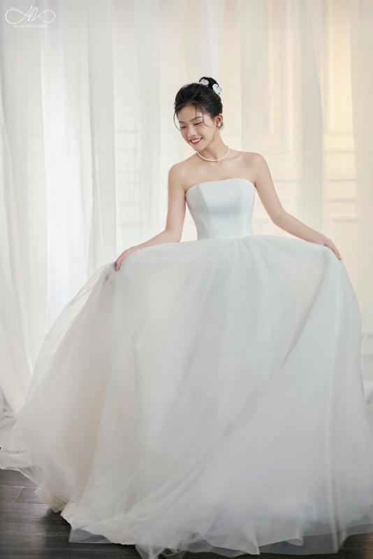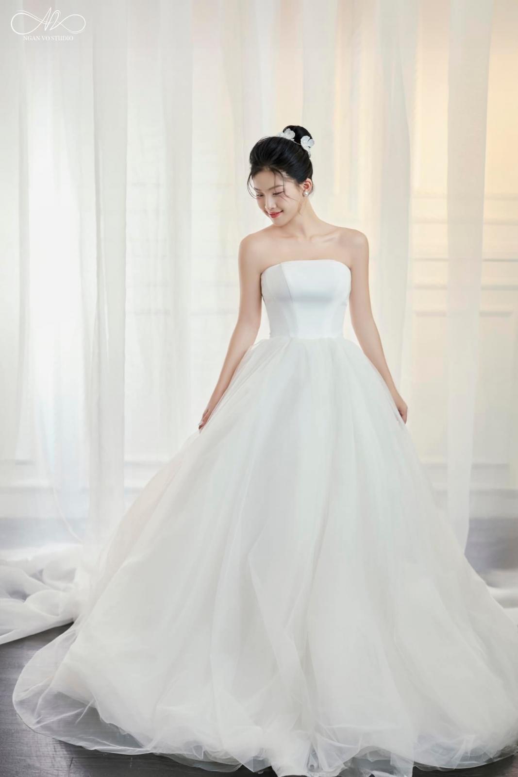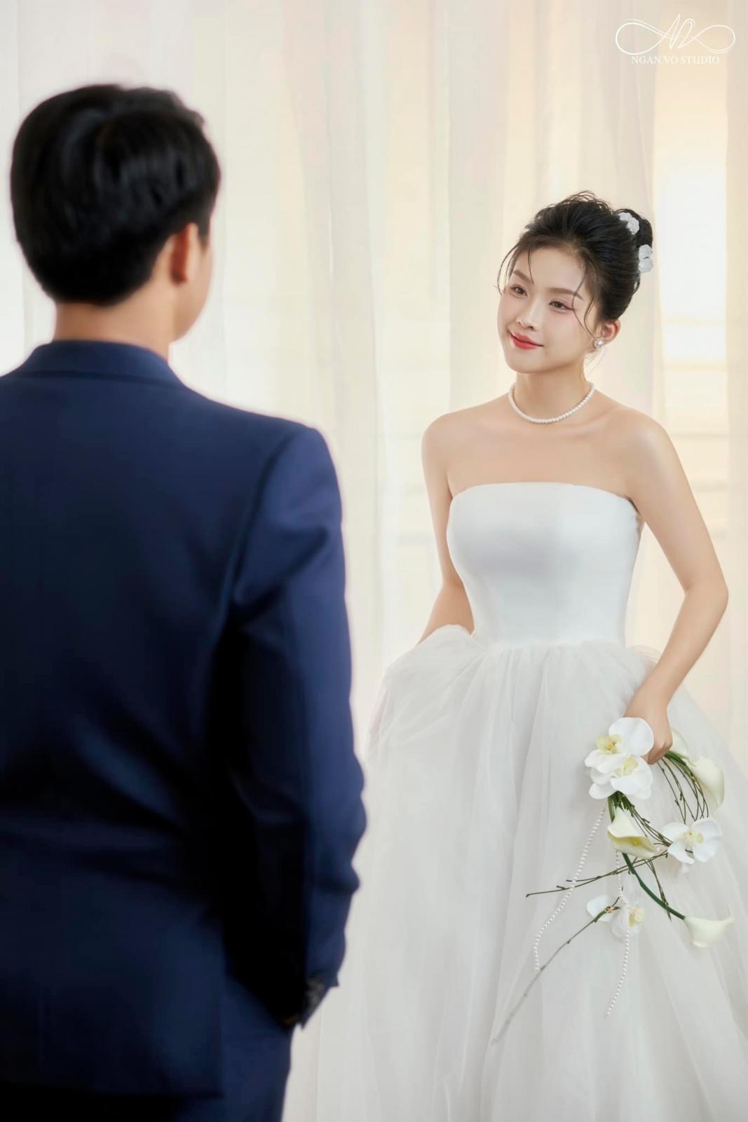 Cô ấy không chỉ là cô dâu trong ngày trọng đại, mà còn là một tình yêu đang chờ được viết nên – bằng những xúc cảm tinh khôi, bằng hạnh phúc lấp lánh trong từng ánh mắt, bằng lời thề hẹn mãi mãi.