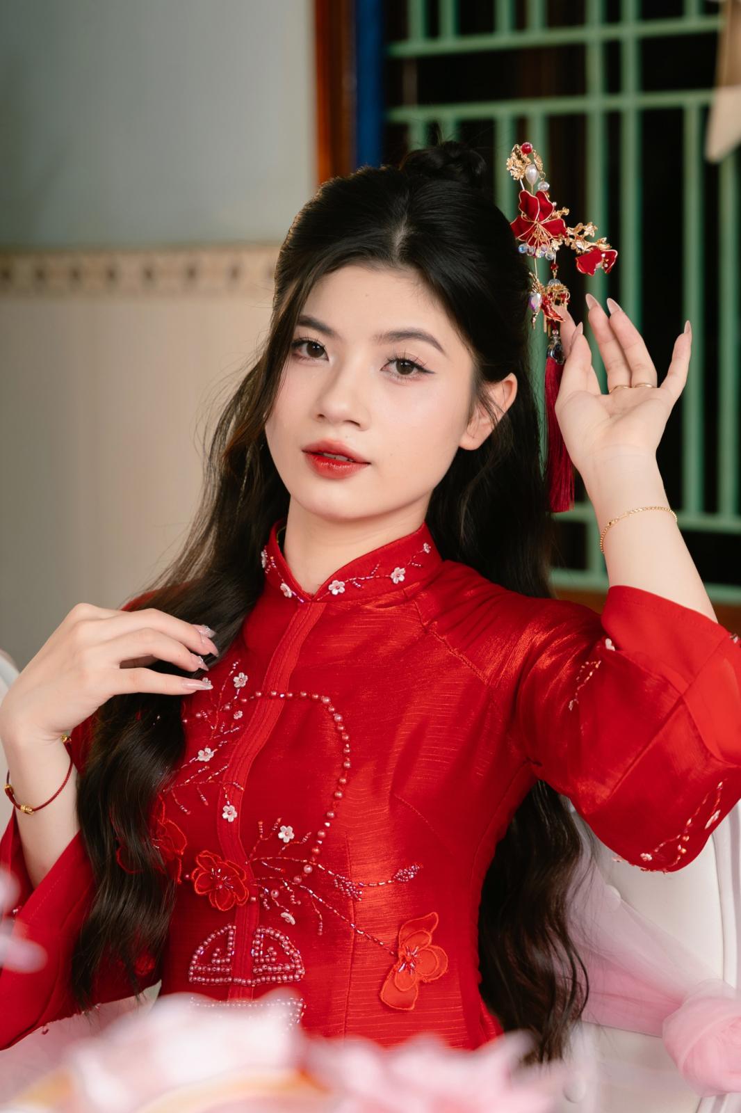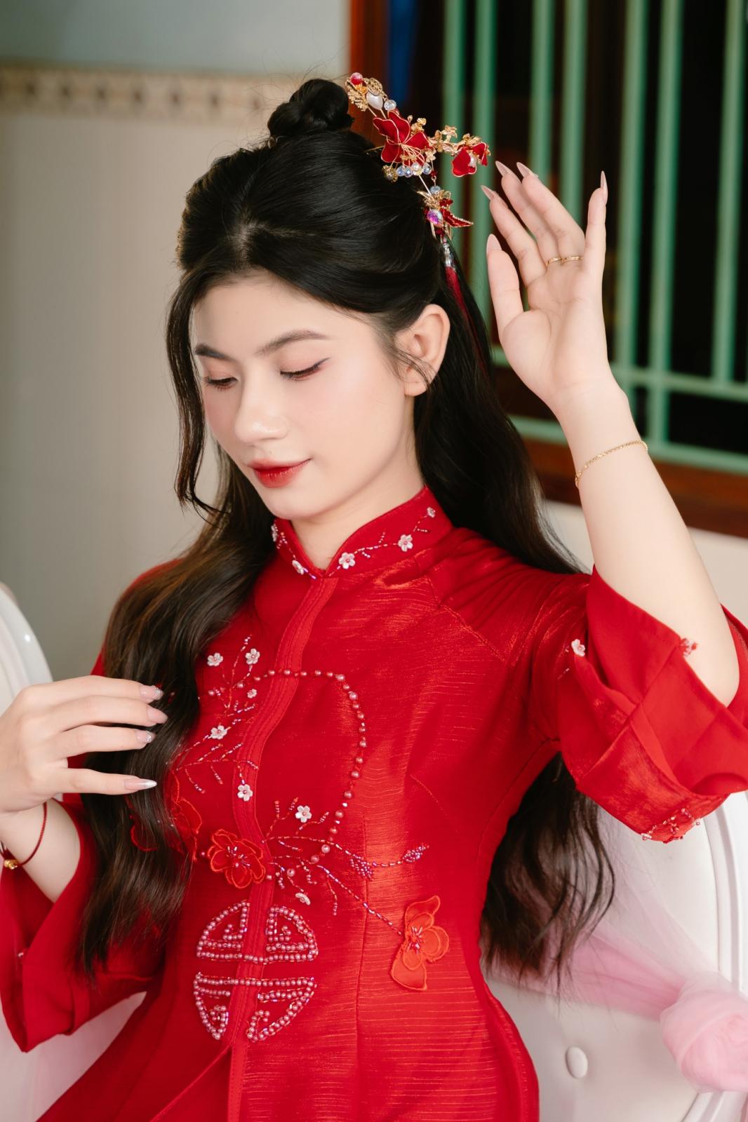 Xinh đẹp trong chiếc áo dài đỏ thắm ngày làm dâu ❤
