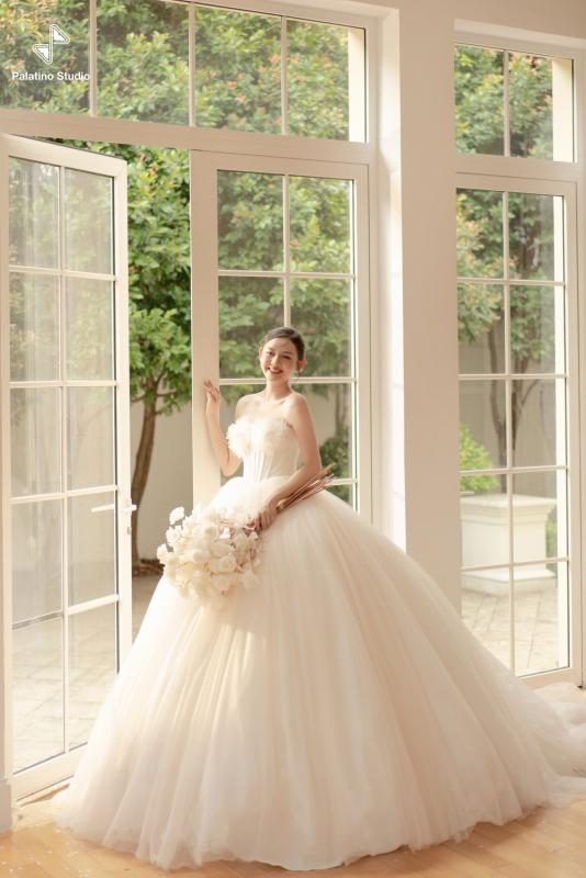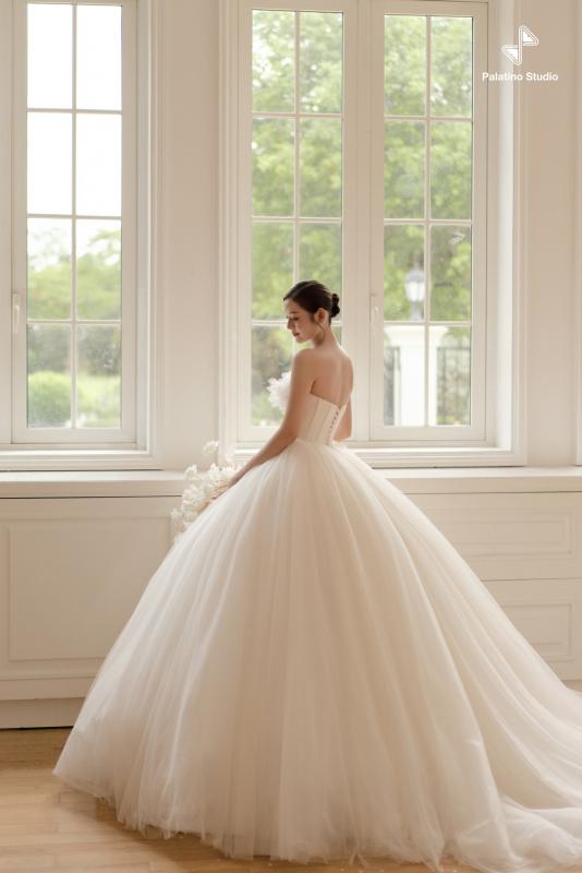✔️Với chiếc váy bồng xòe với chất liệu Organza cao cấp sẽ khiến cô dâu có cảm giác nhẹ nhàng khi di chuyển tại những điểm chụp ngoại cảnh mà vẫn đảm bảo được nét lộng lẫy vốn có của váy cưới