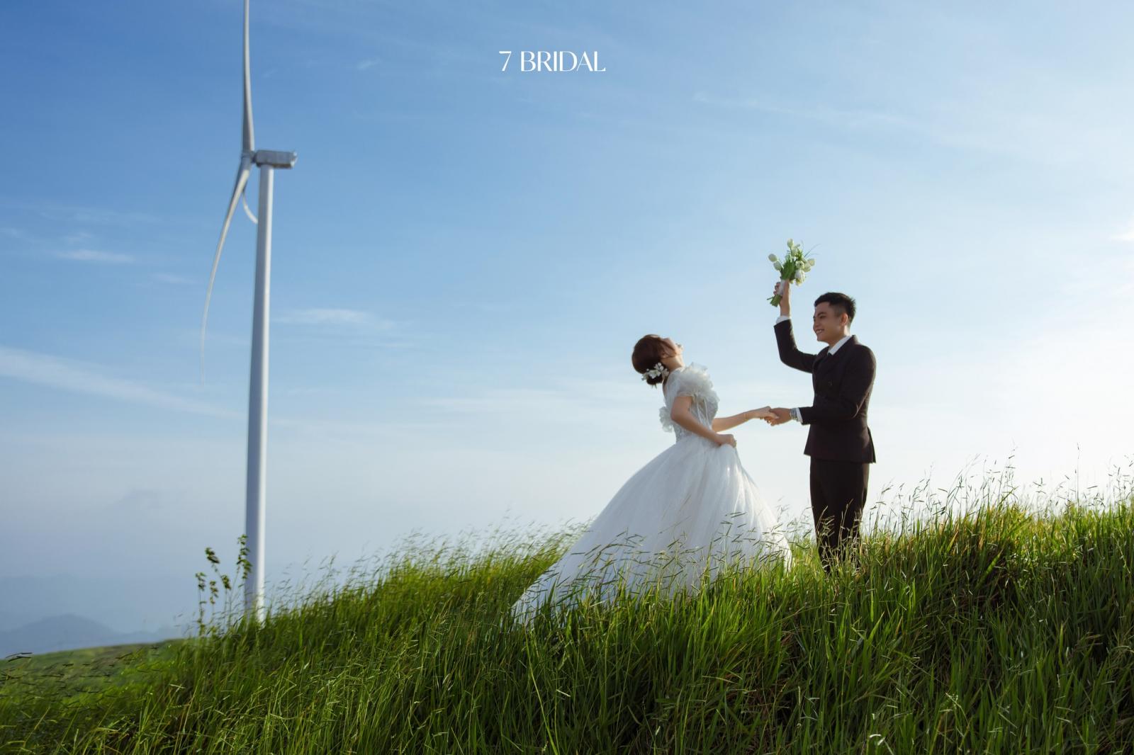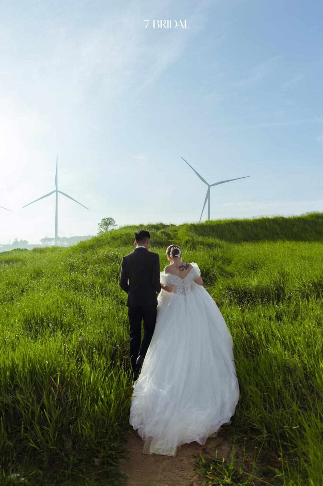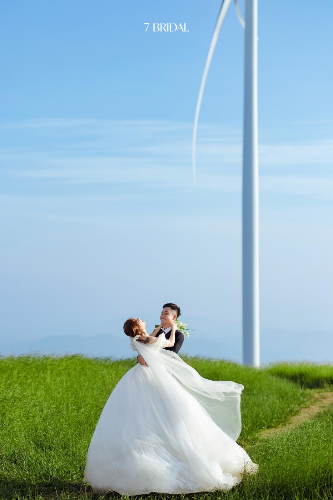 Điện gió sừng sững giữa trời như một biểu tượng của sự bền vững, cũng giống như lời hứa trọn đời mà họ dành cho nhau. Bộ ảnh không chỉ đẹp ở bối cảnh, mà còn đẹp ở sự chân thành và niềm hạnh phúc được ghi dấu trong từng khung hình.