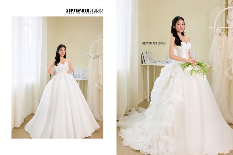 Nhẹ nhàng như cánh hoa đầu mùa,một thiết kế tôn vinh nét đẹp thuần khiết và kiêu hãnh của nàng dâu. Thiết kế cúp ngực tinh giản nhưng tinh tế, điểm nhấn hoa 3D được đính kết thủ công khéo léo nơi eo váy tạo nên sự thanh tao, vừa dịu dàng vừa đầy1