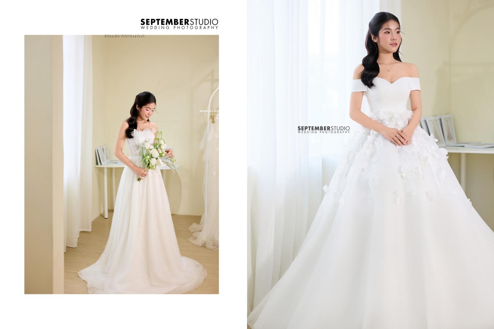 Nhẹ nhàng như cánh hoa đầu mùa,một thiết kế tôn vinh nét đẹp thuần khiết và kiêu hãnh của nàng dâu. Thiết kế cúp ngực tinh giản nhưng tinh tế, điểm nhấn hoa 3D được đính kết thủ công khéo léo nơi eo váy tạo nên sự thanh tao, vừa dịu dàng vừa đầy sức hút.