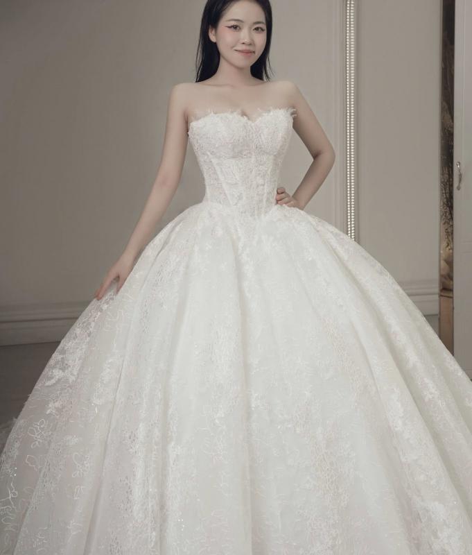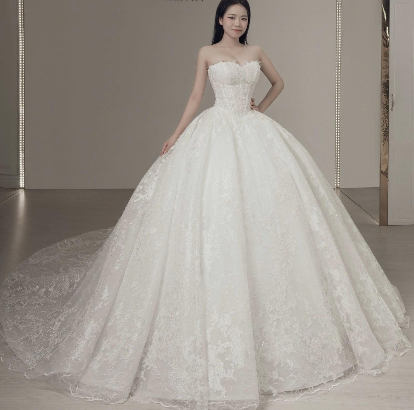Váy cưới ren cáo cấp sang trọng nữ tính. Được dựng fom concept ton dáng tuyết đối, giúp Nàng tỏa sáng trong ngày cưới cửa mình