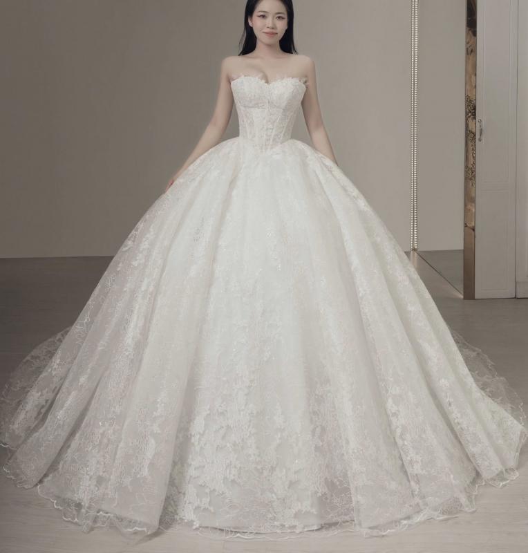 Form ôm nhẹ, tay ren trong suốt, từng đường hoa thêu khẽ chạm lên da… đủ để khiến em cảm thấy mình thật sự là “cô dâu trong mơ”.